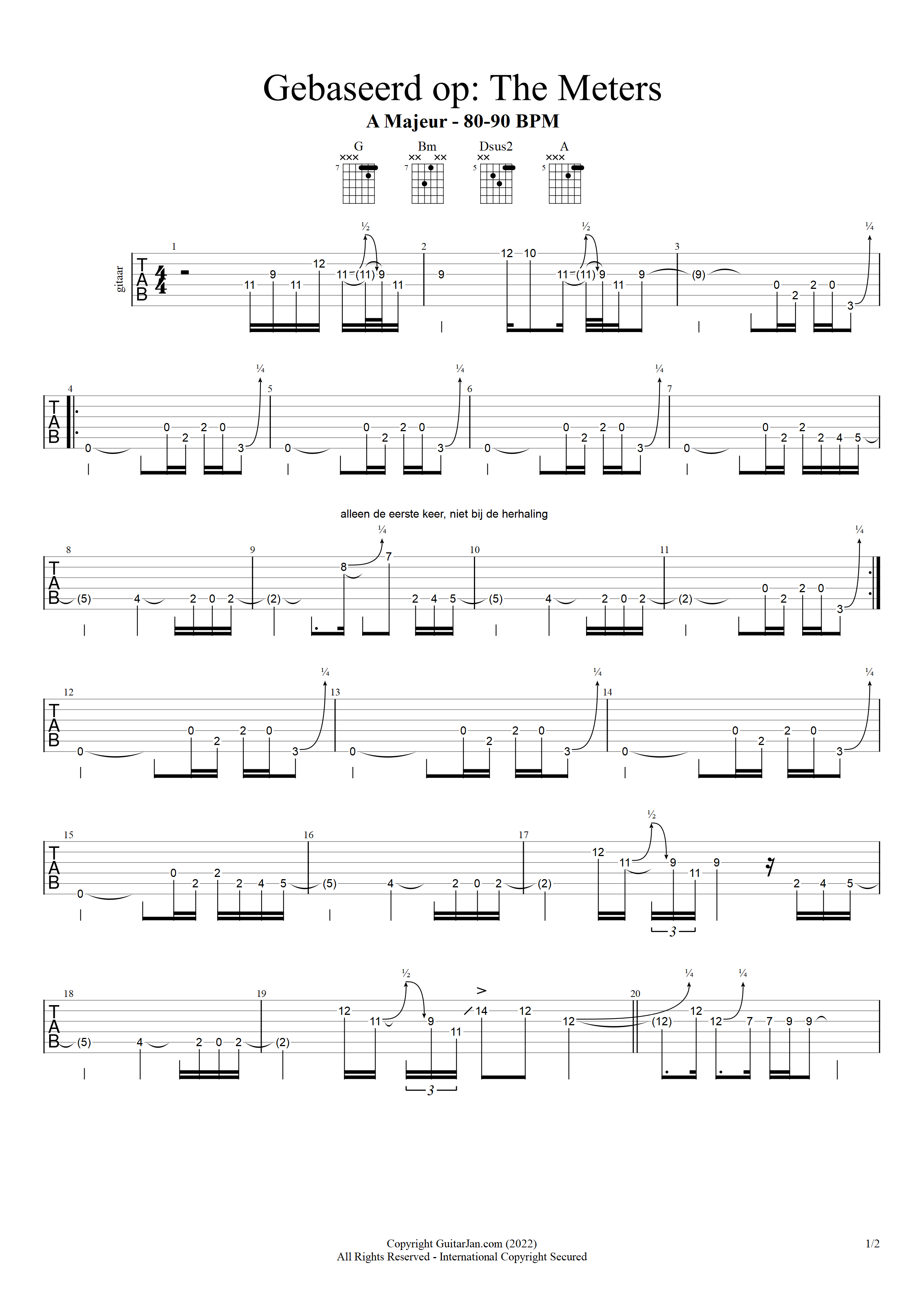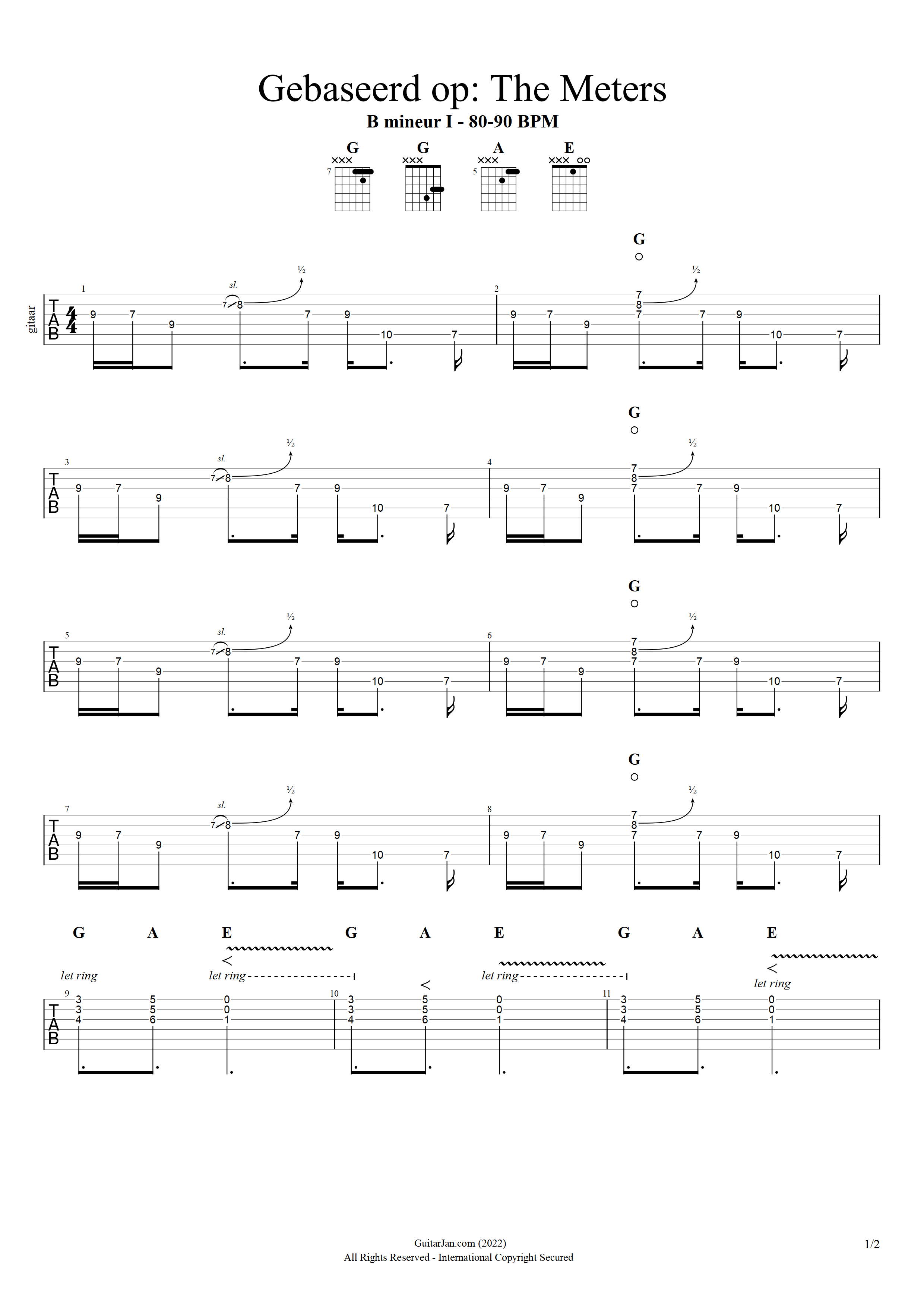 met welke backing track je je solo wilt gaan spelen. In de tabulaturen vind je het aantal BPM (Beats Per Minute) terug, maar dat is slechts