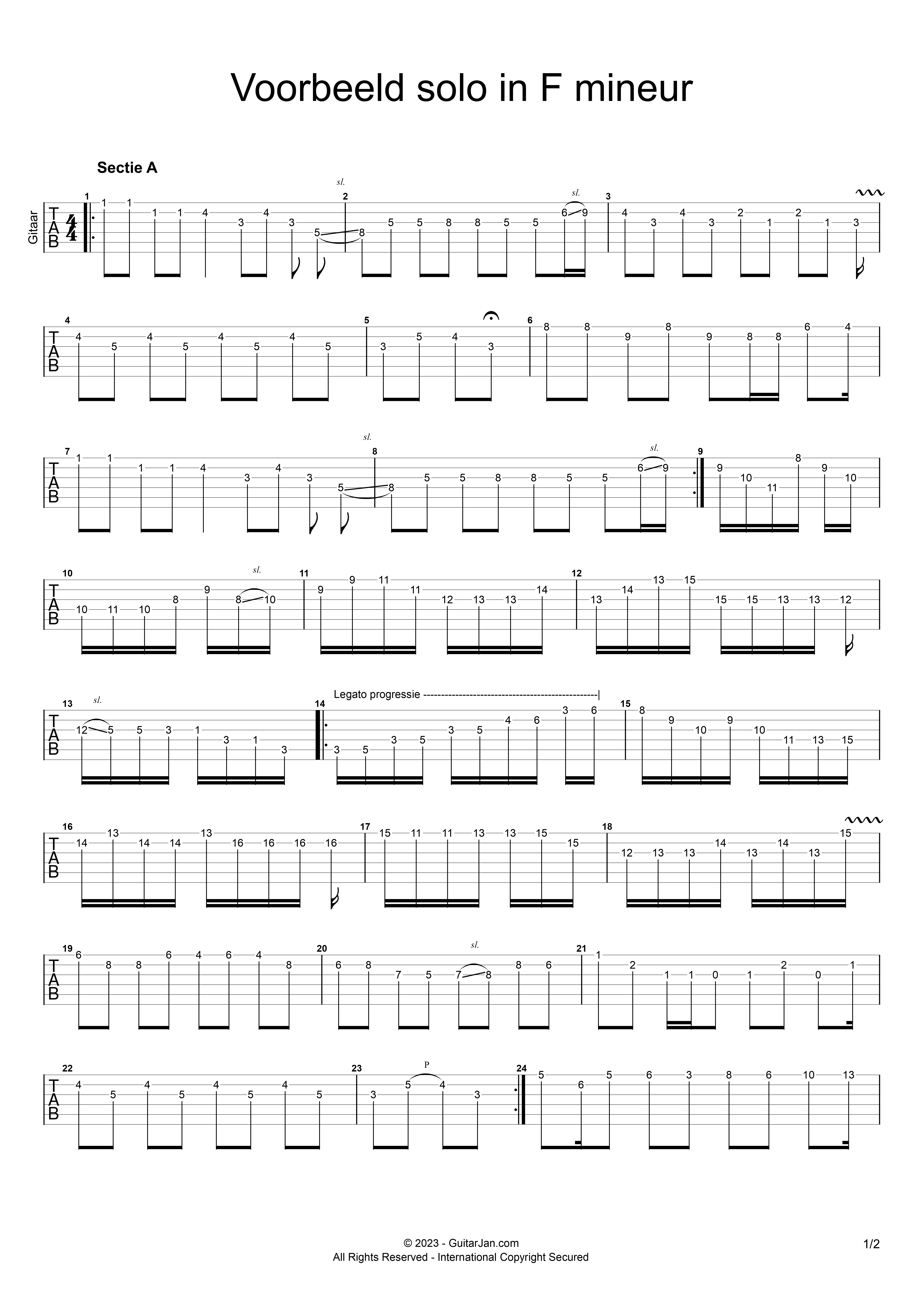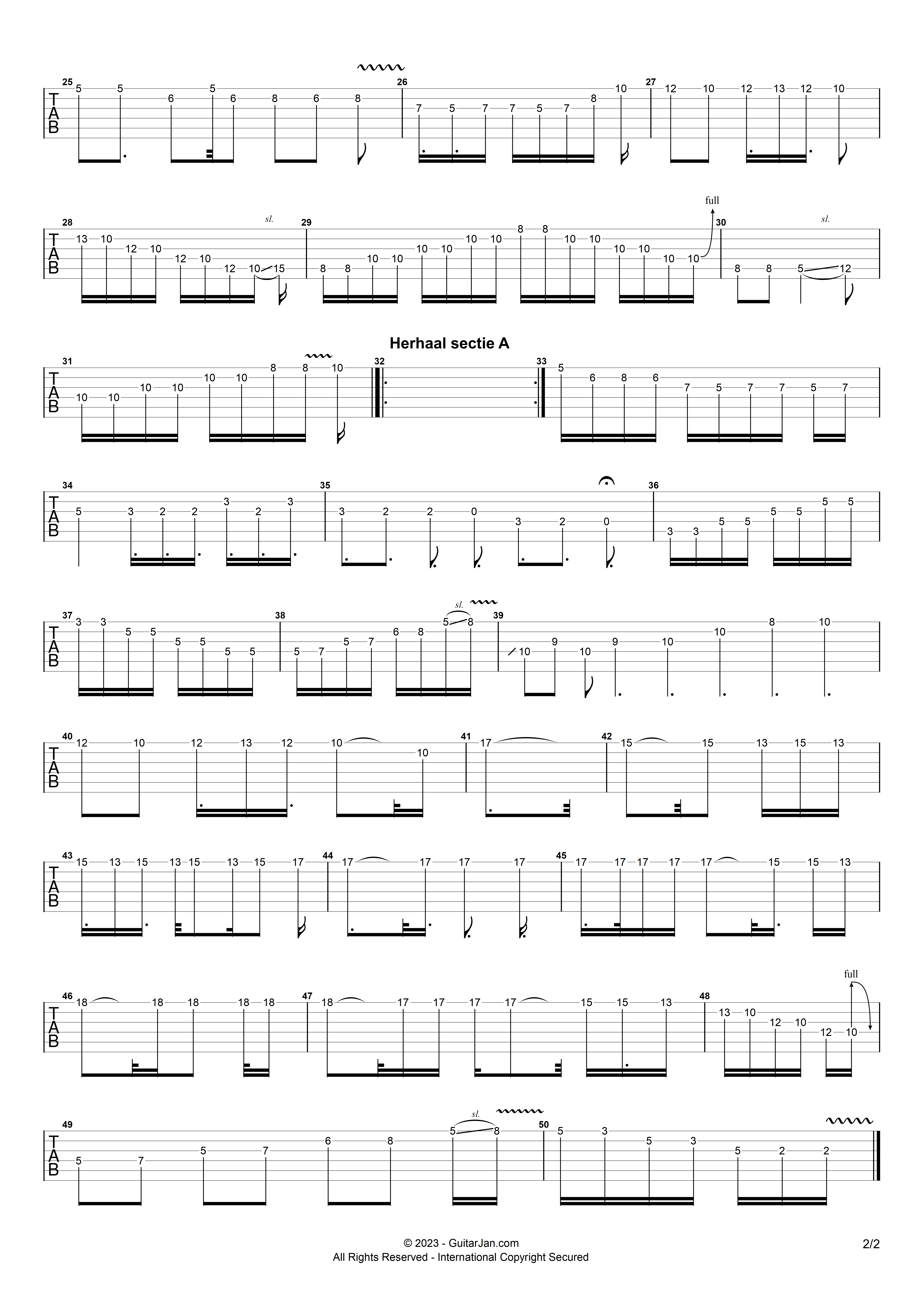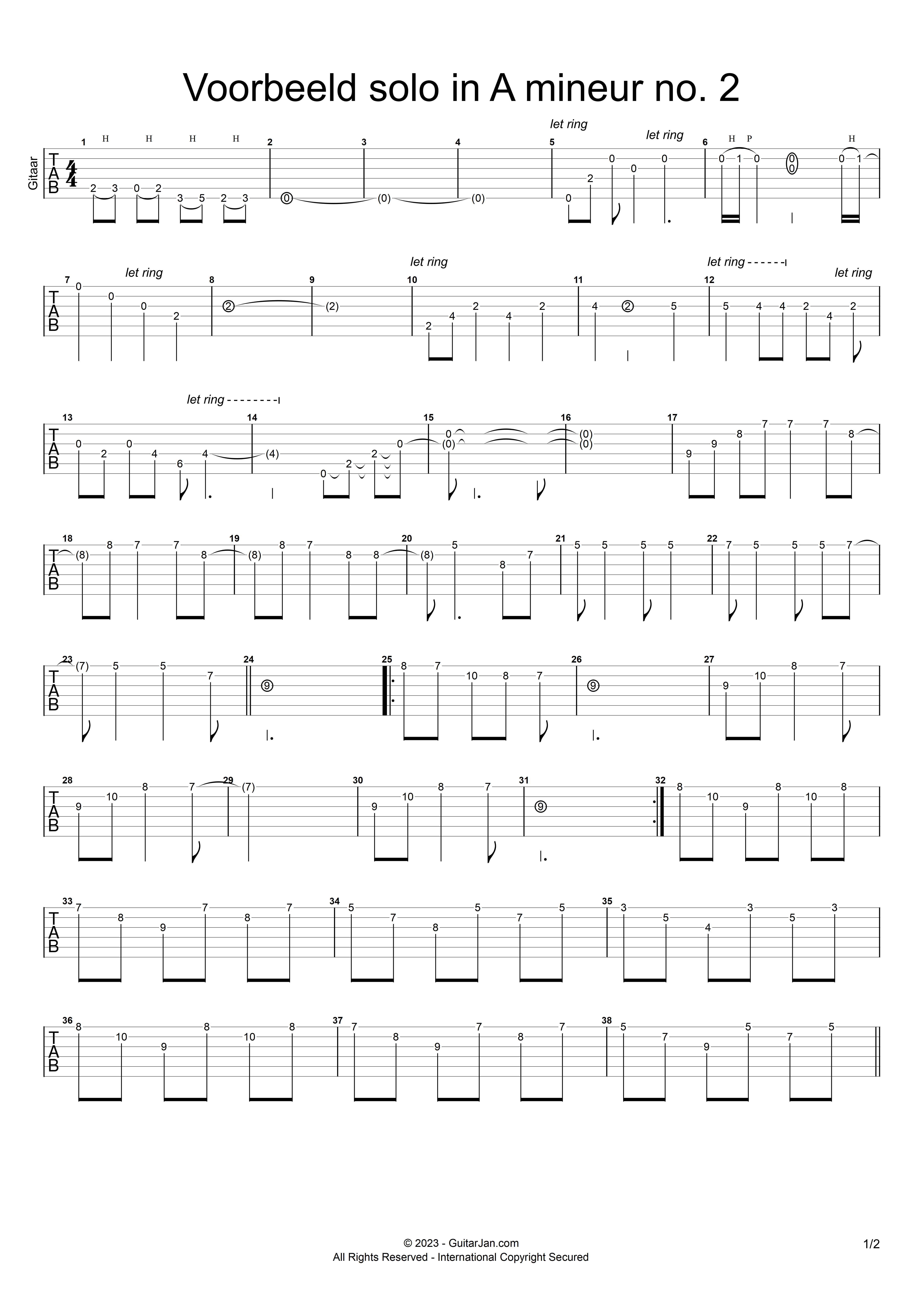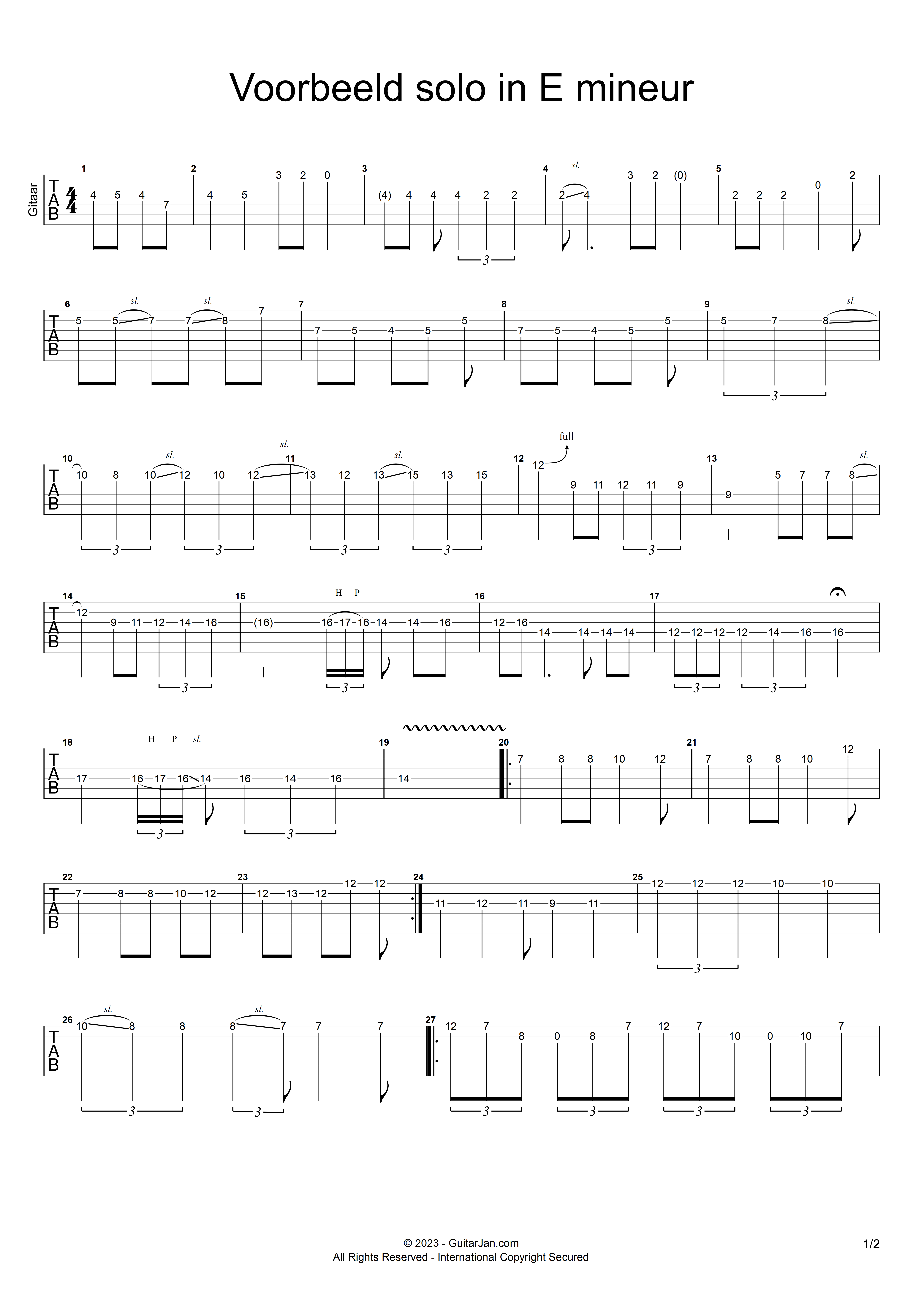 De solo's zijn zodanig gearrangeerd, dat de tabulatuur maximaal 2 pagina's beslaat, en door je beeldscherm volledig te benutten, kun je beide pagina's
