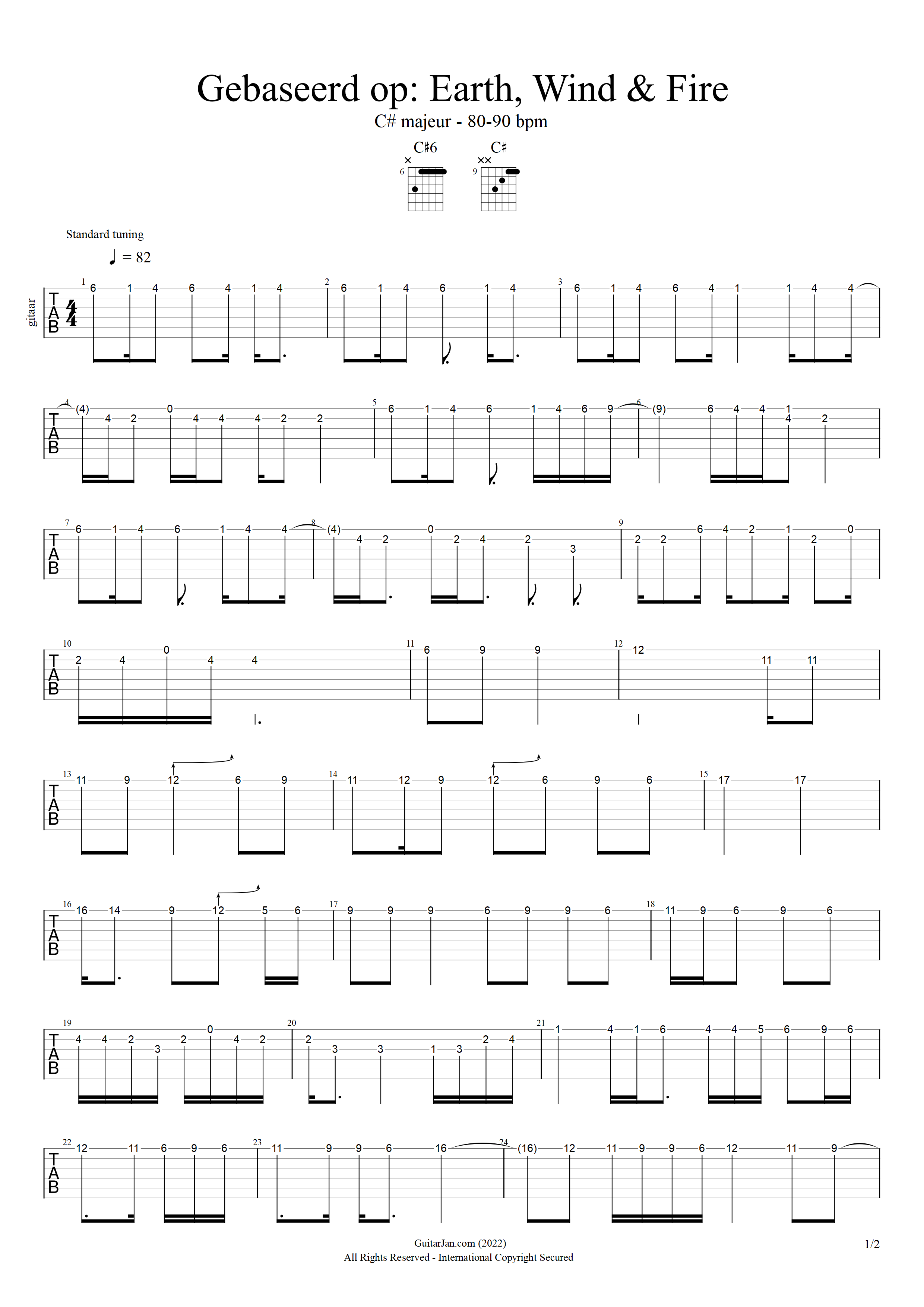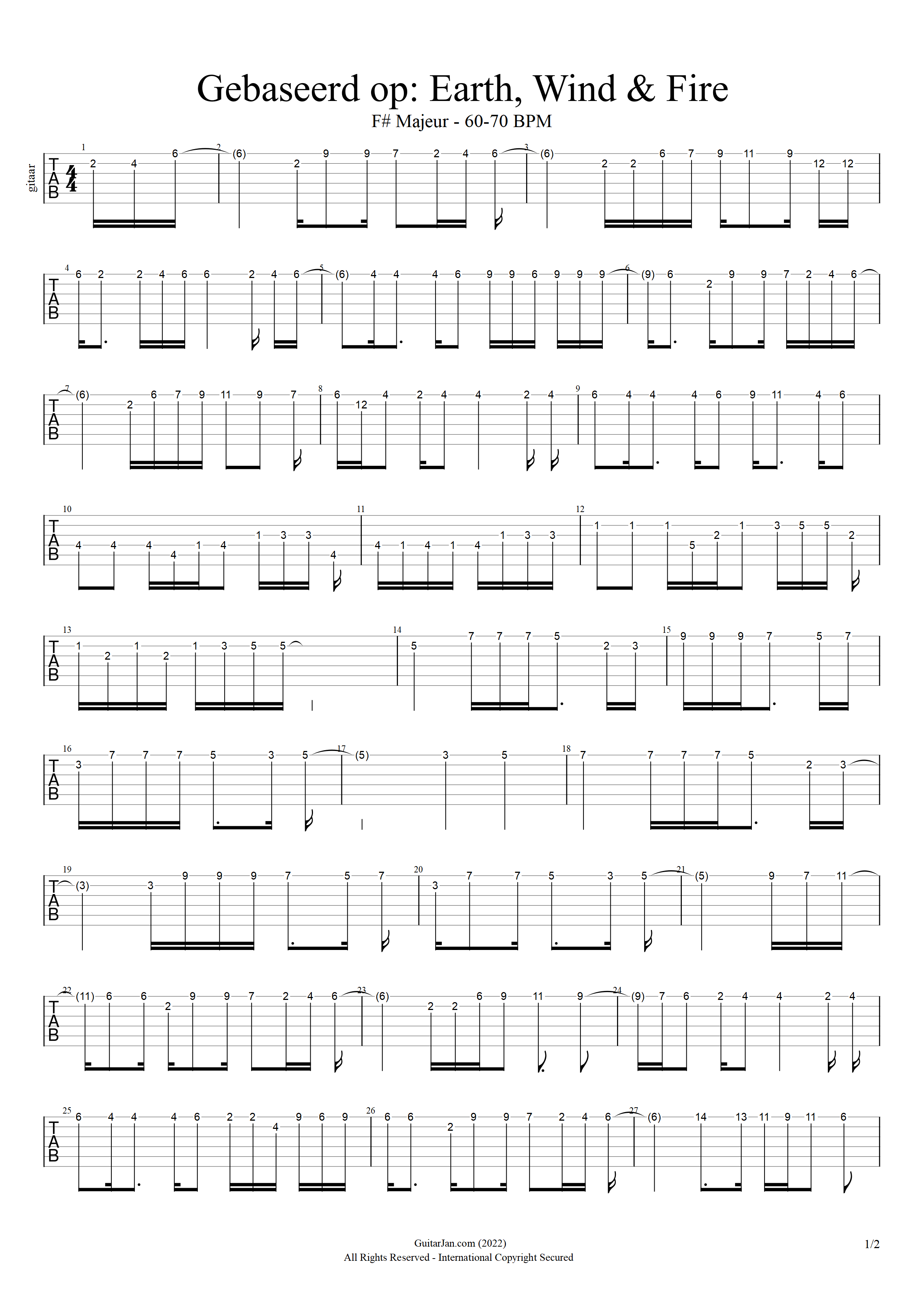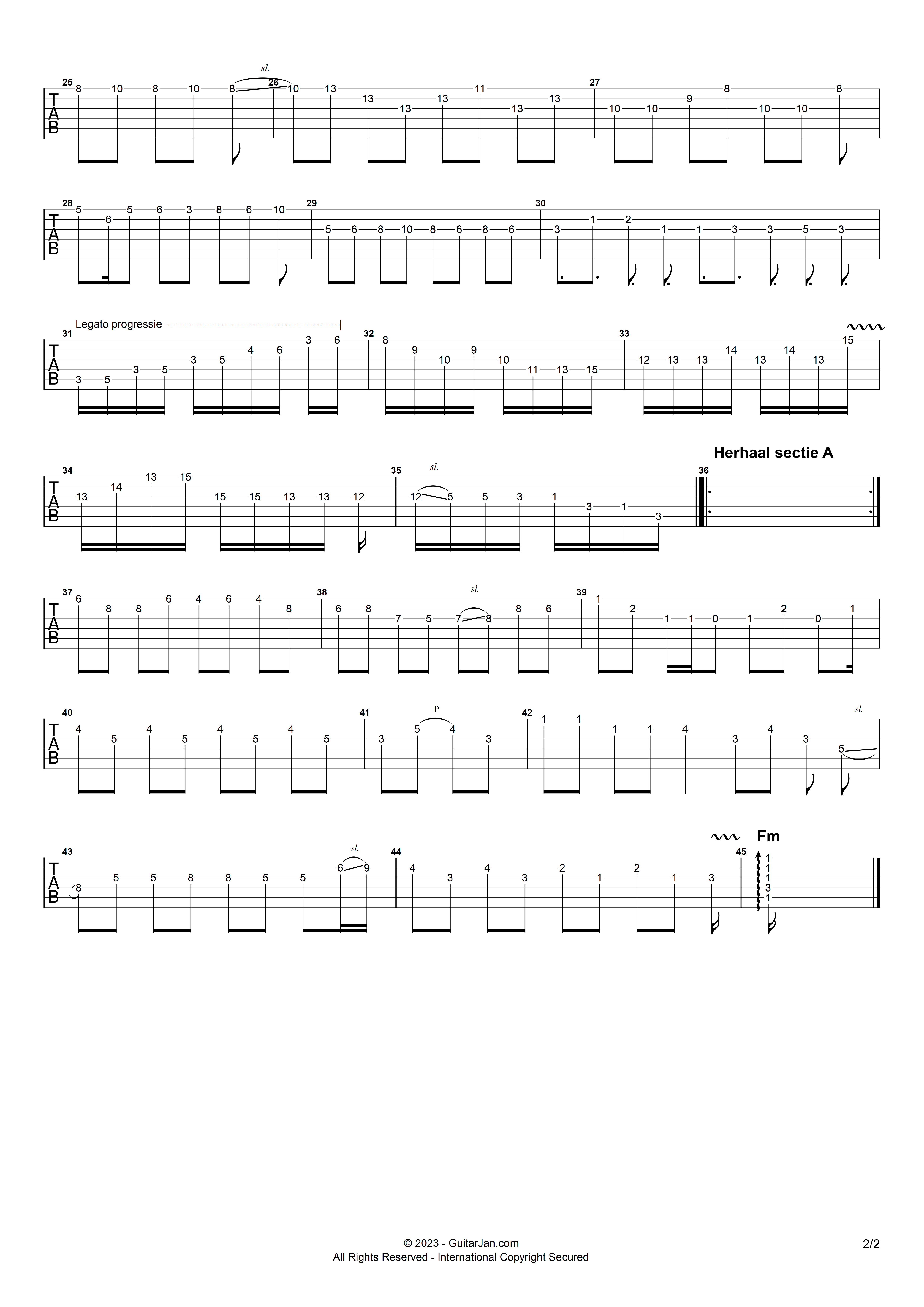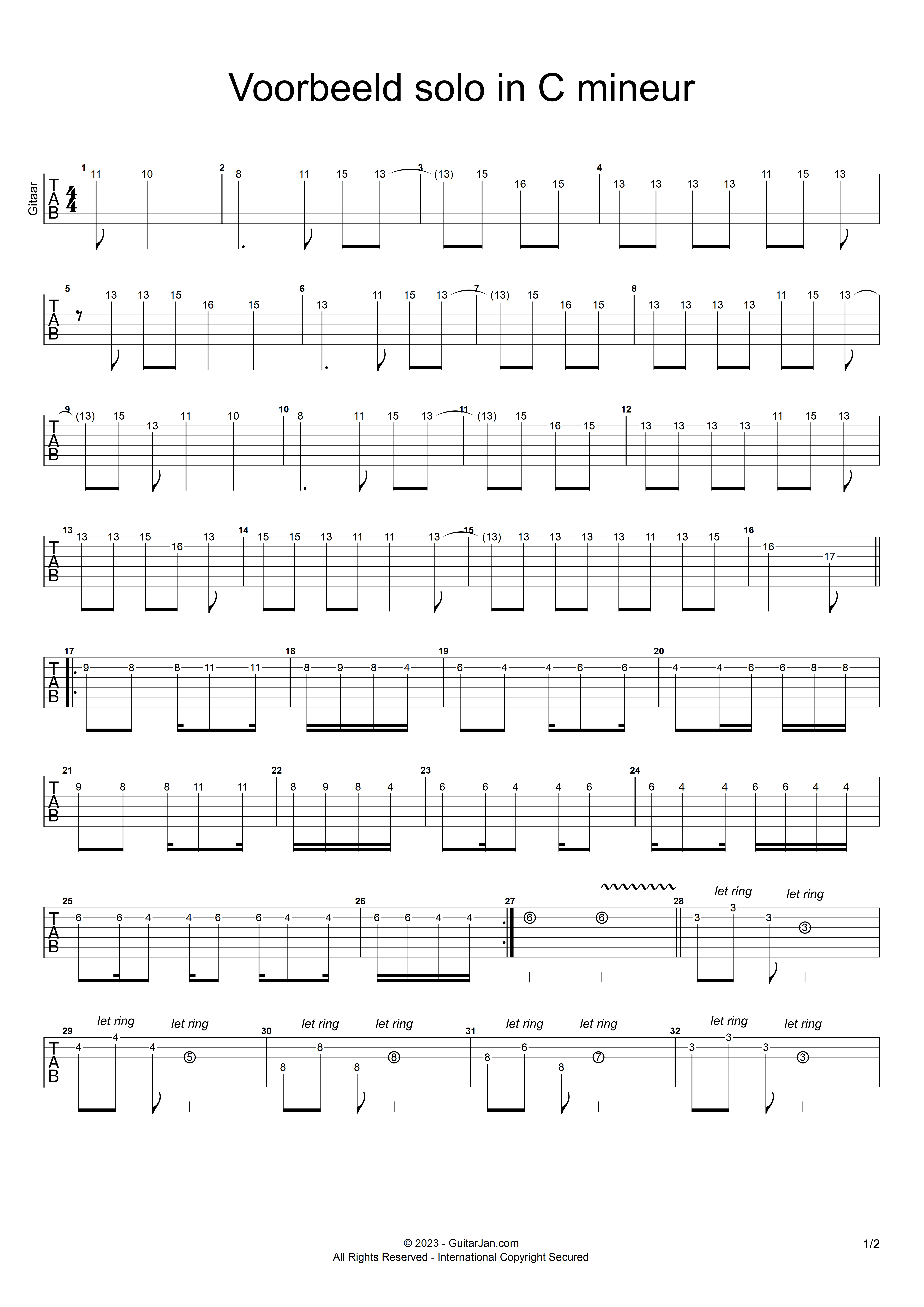 De solo's zijn zodanig gearrangeerd, dat de tabulatuur maximaal 2 pagina's beslaat, en door je beeldscherm volledig te benutten, kun je beide pagina's
