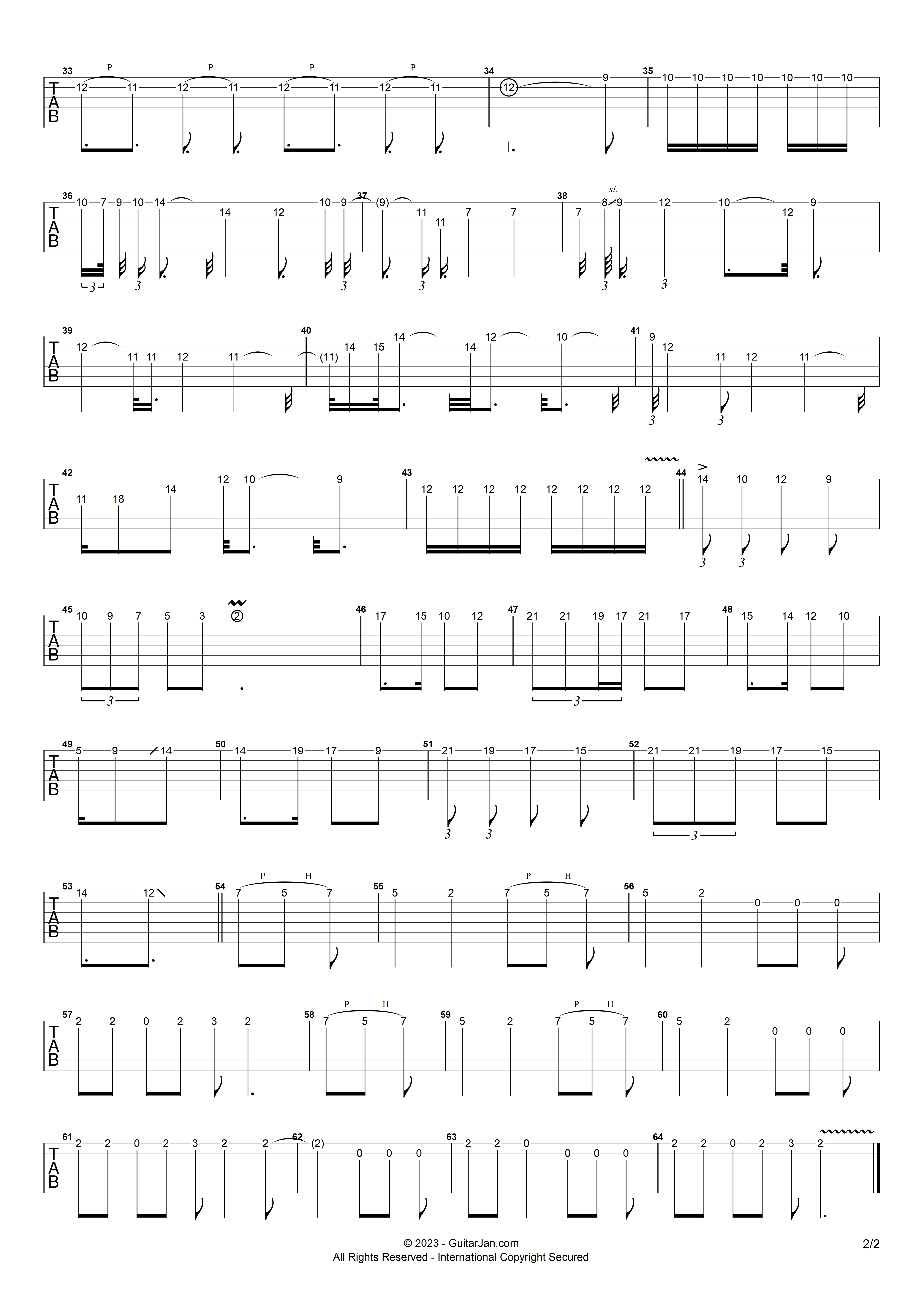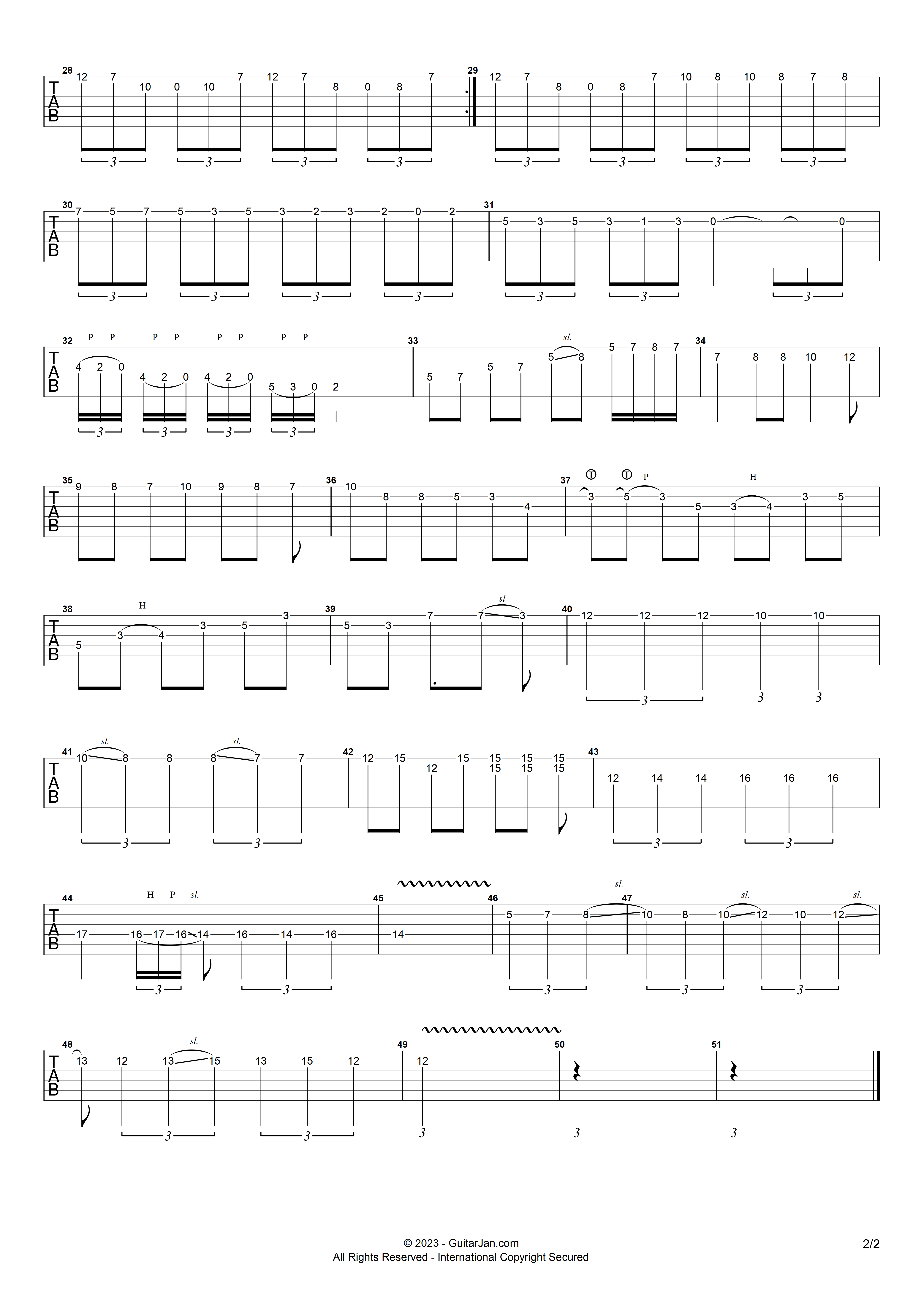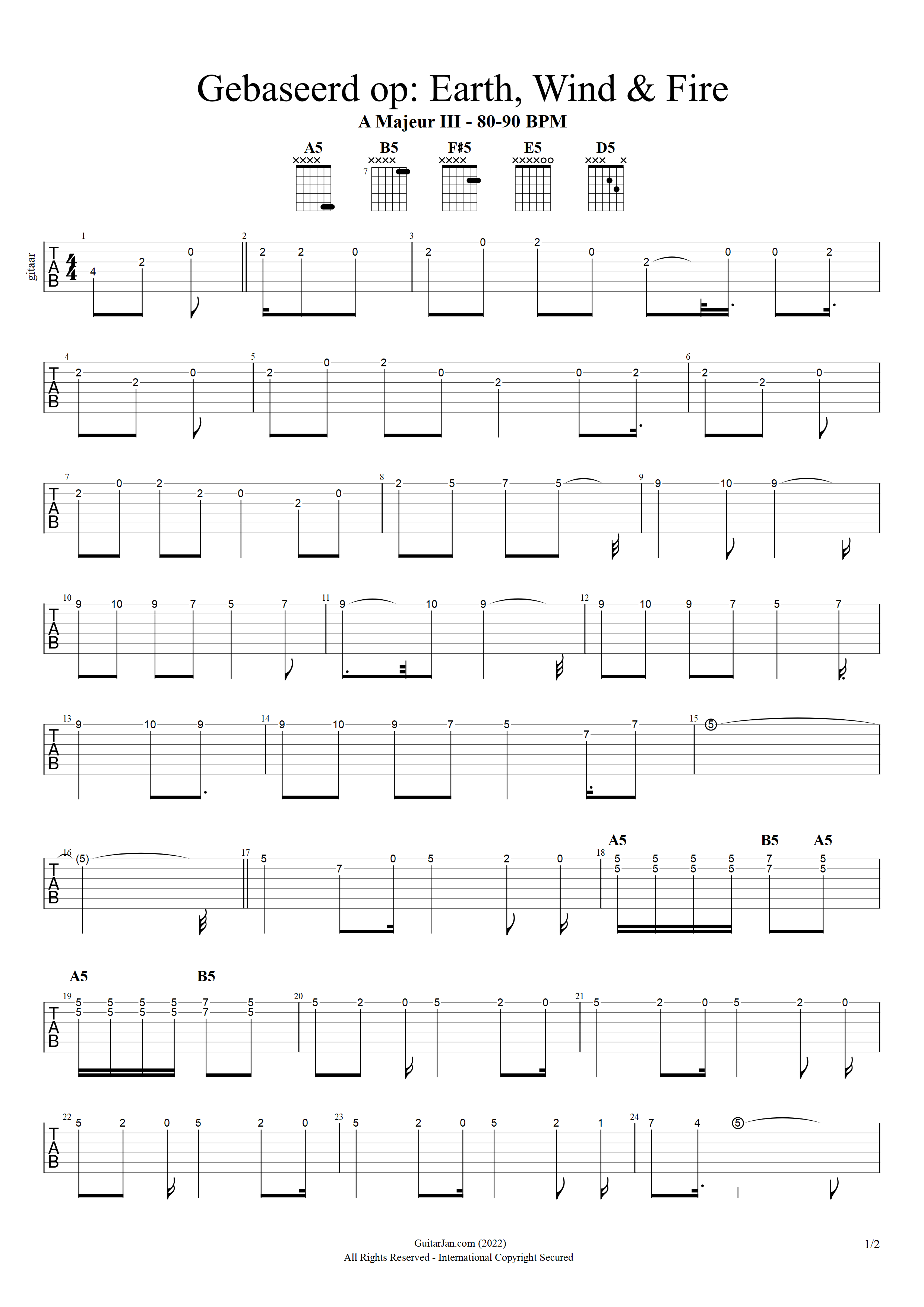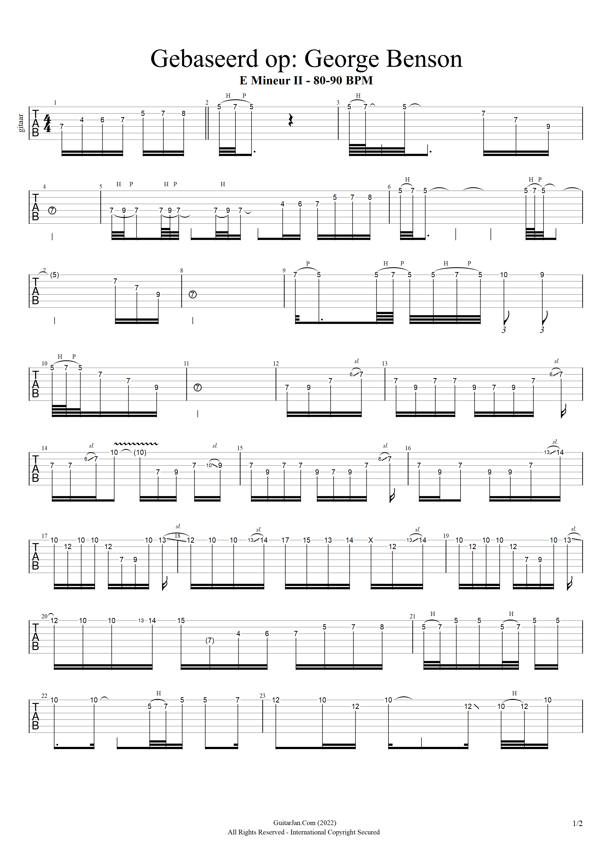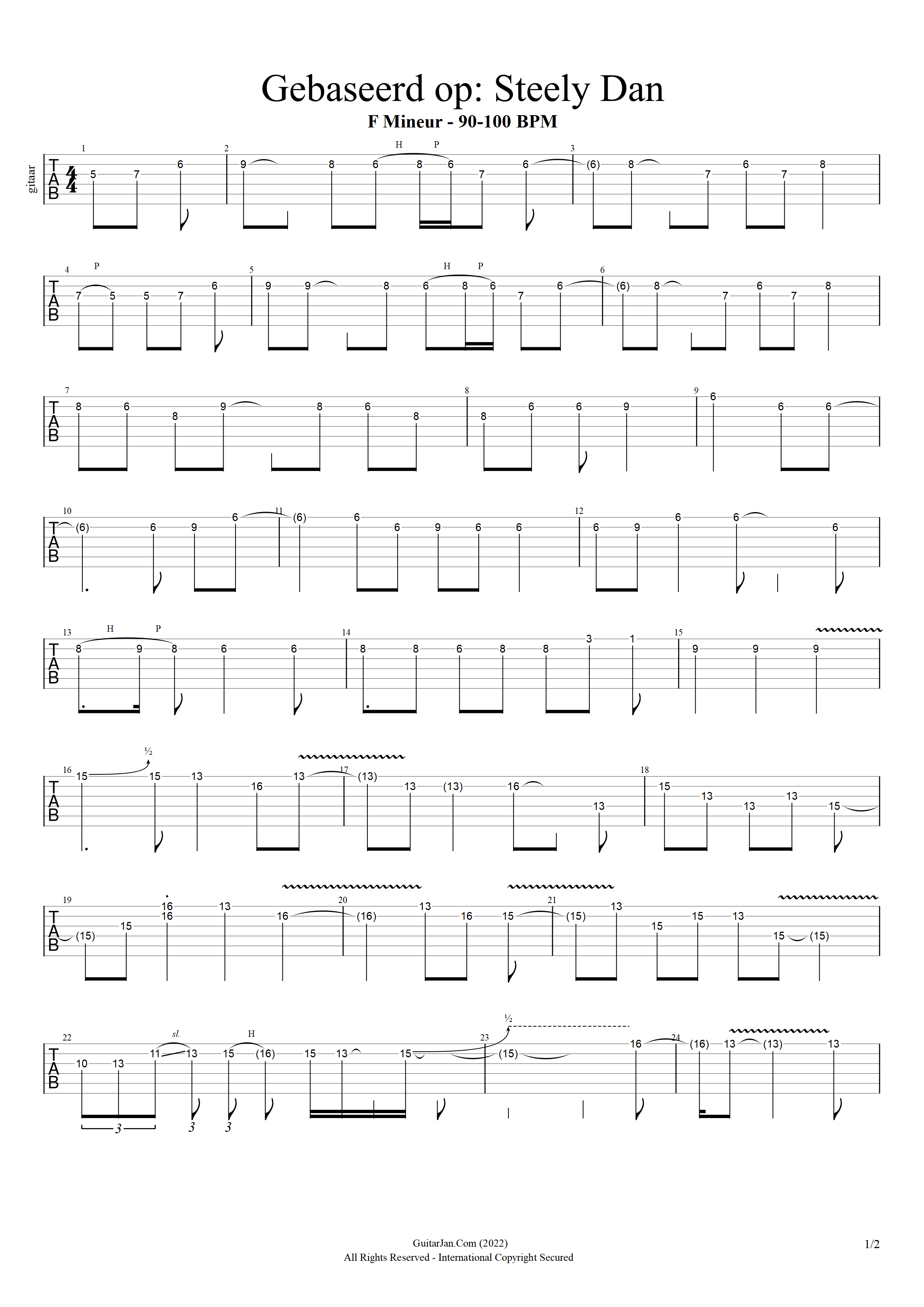 De solo's zijn zodanig gearrangeerd, dat de tabulatuur maximaal 2 pagina's beslaat, en door je beeldscherm volledig te benutten, kun je beide pagina's