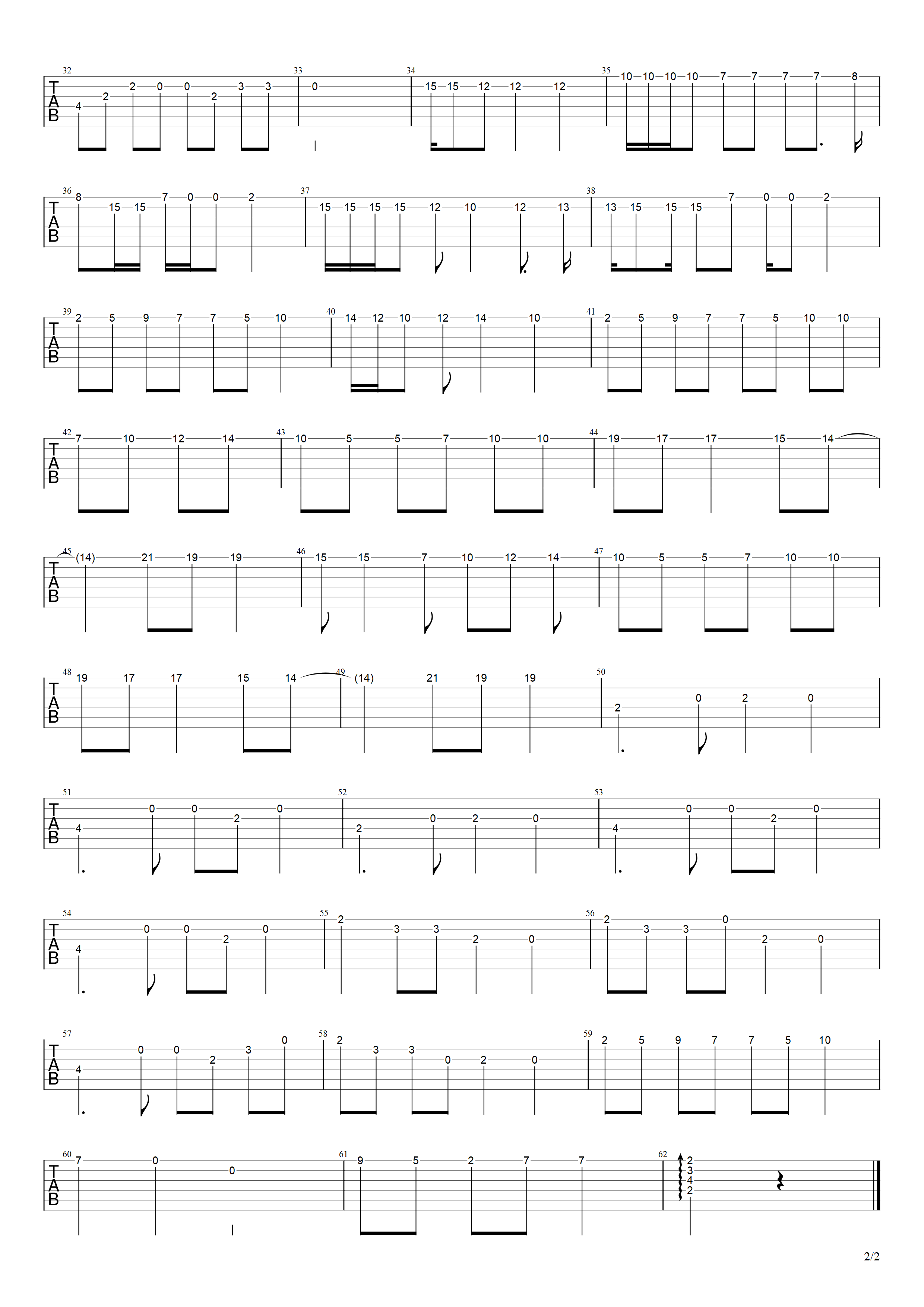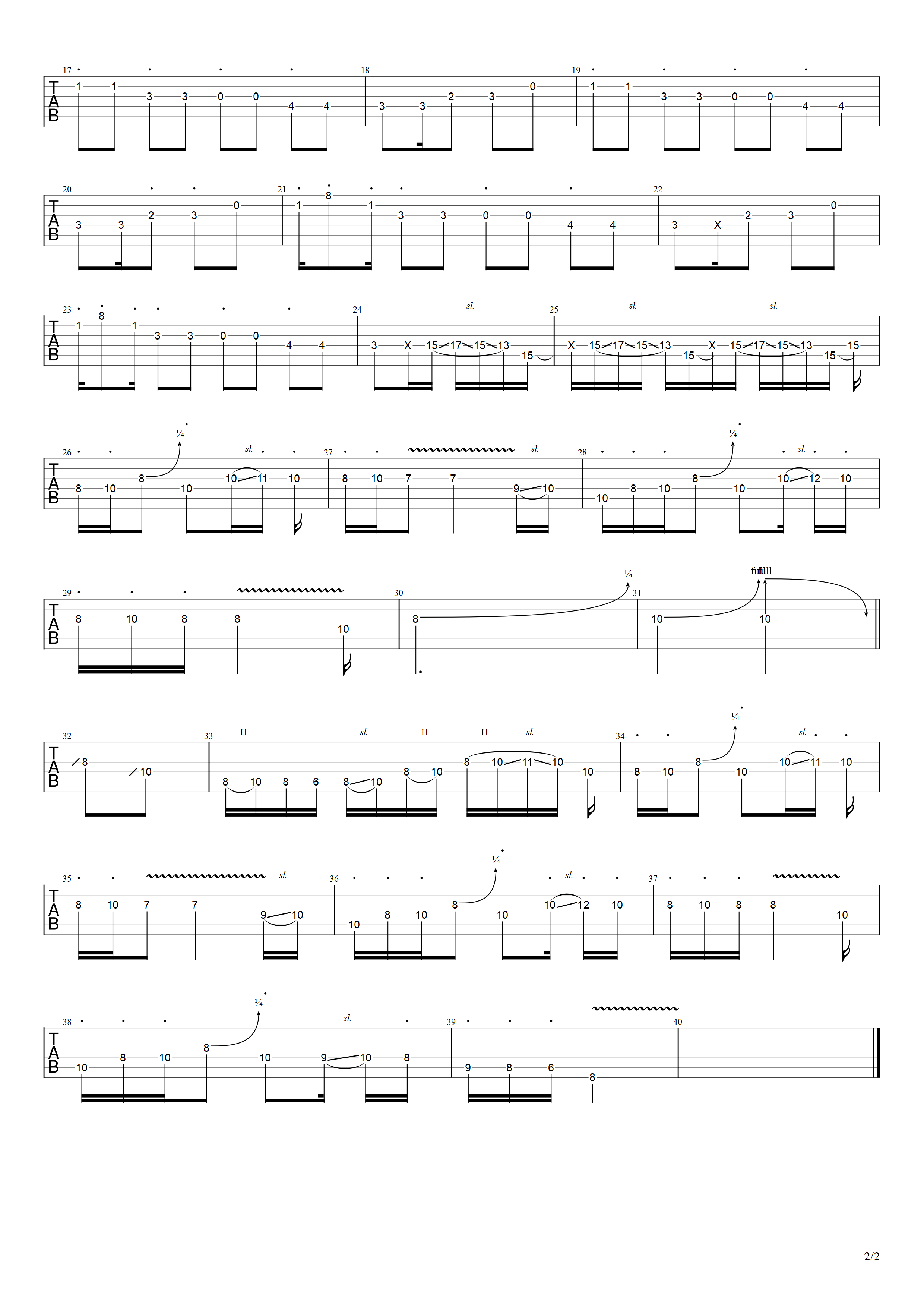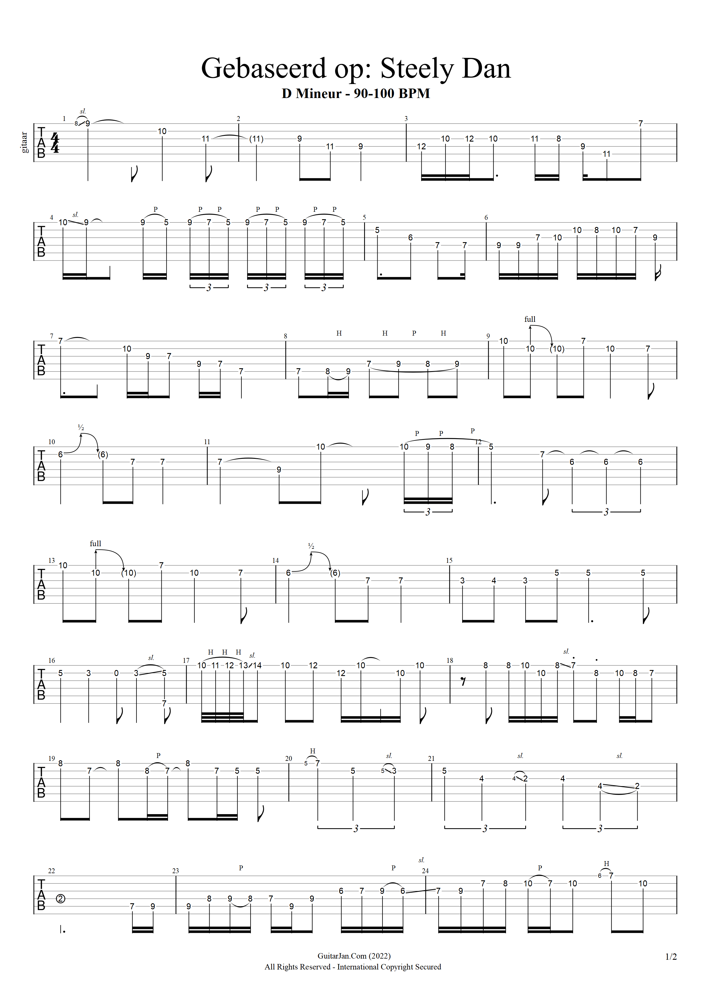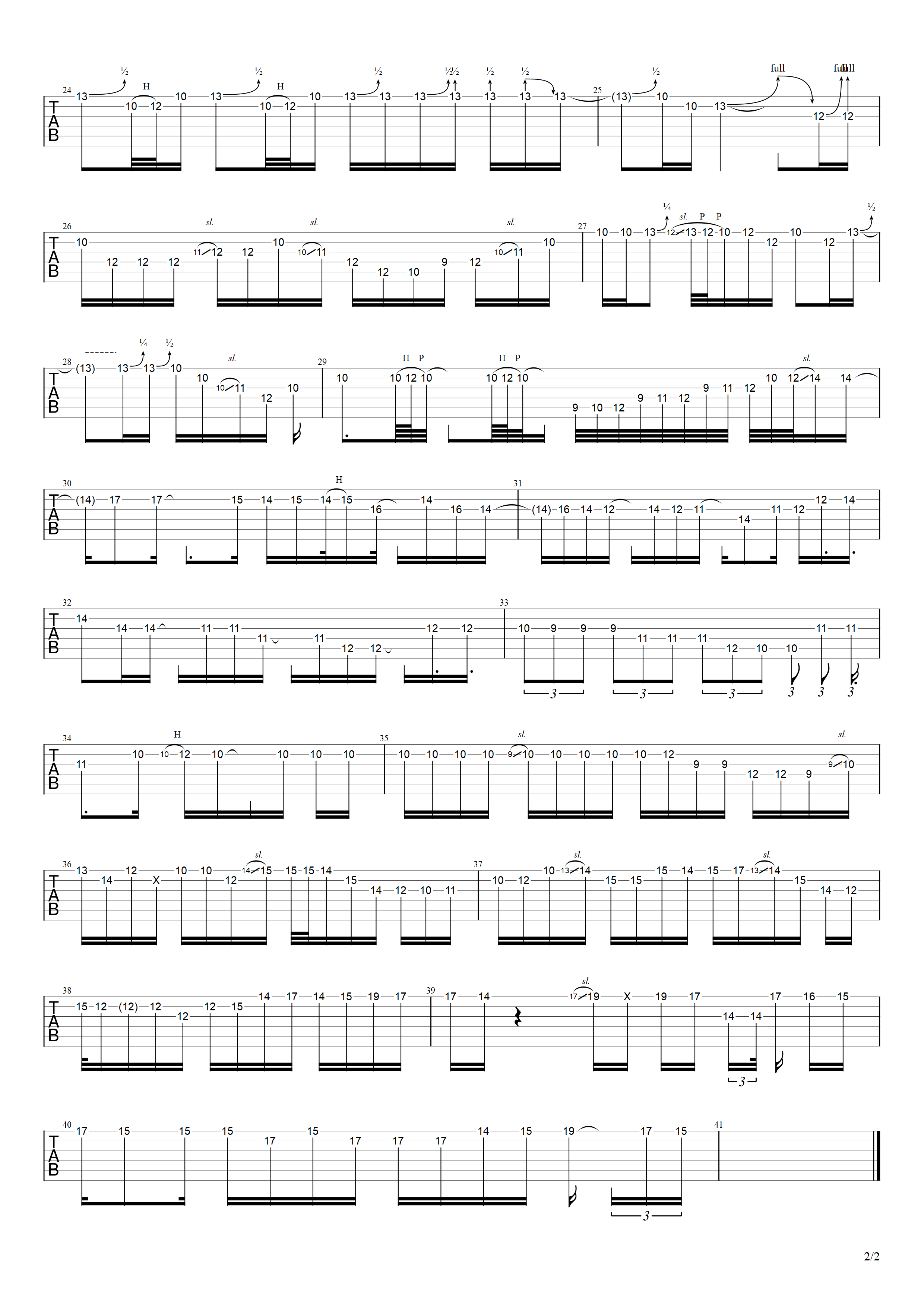 De solo's zijn zodanig gearrangeerd, dat de tabulatuur maximaal 2 pagina's beslaat, en door je beeldscherm volledig te benutten, kun je beide pagina's