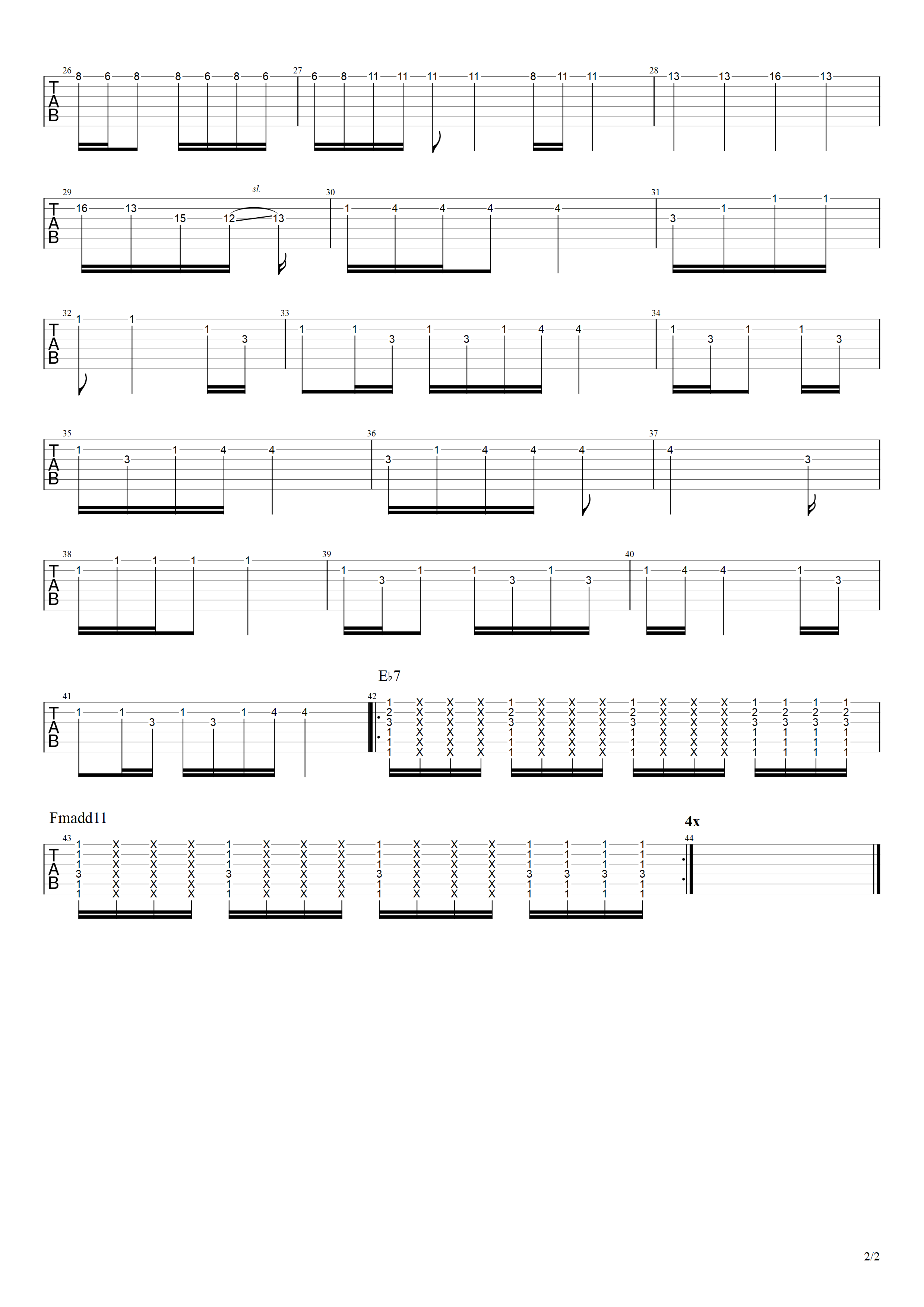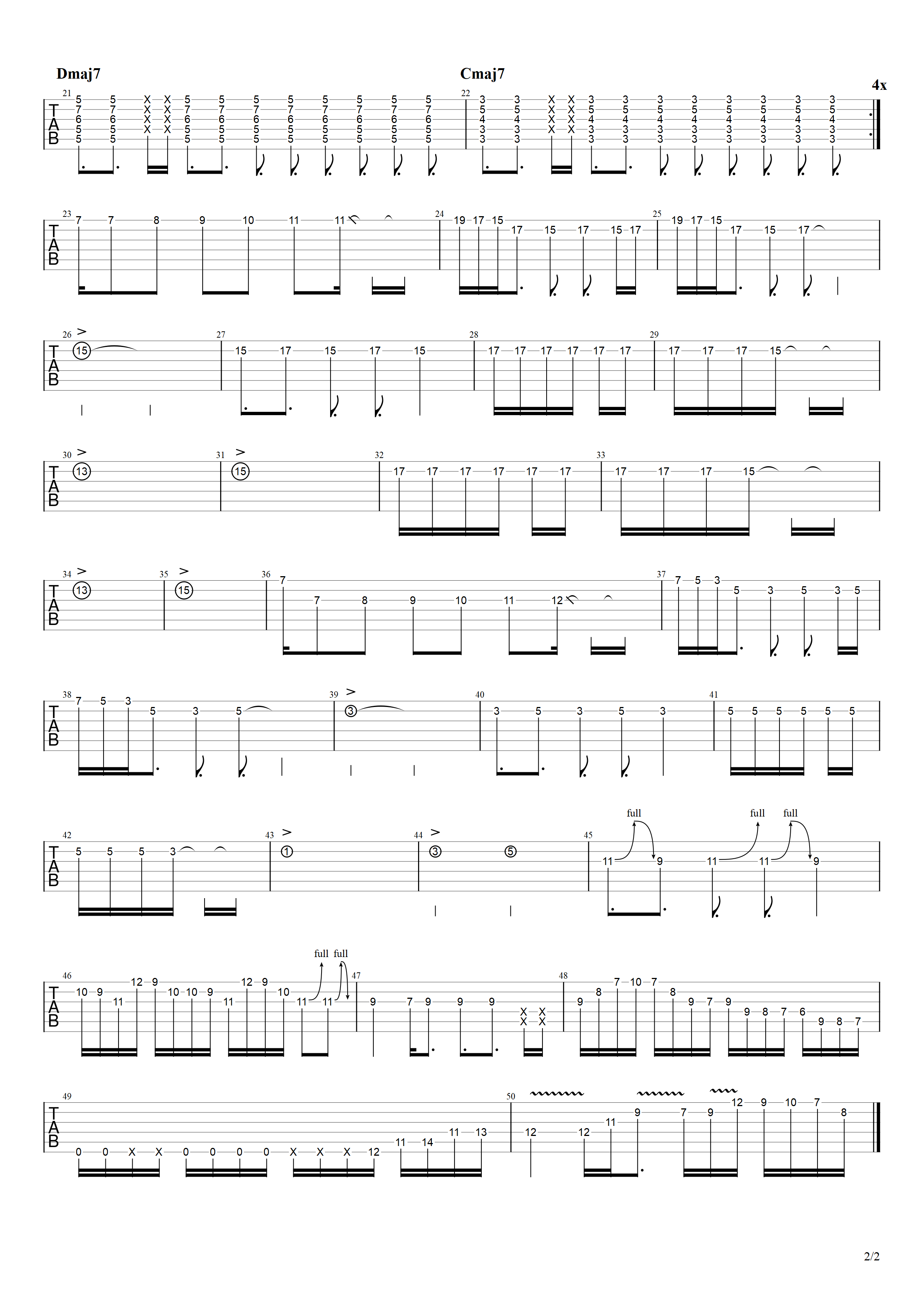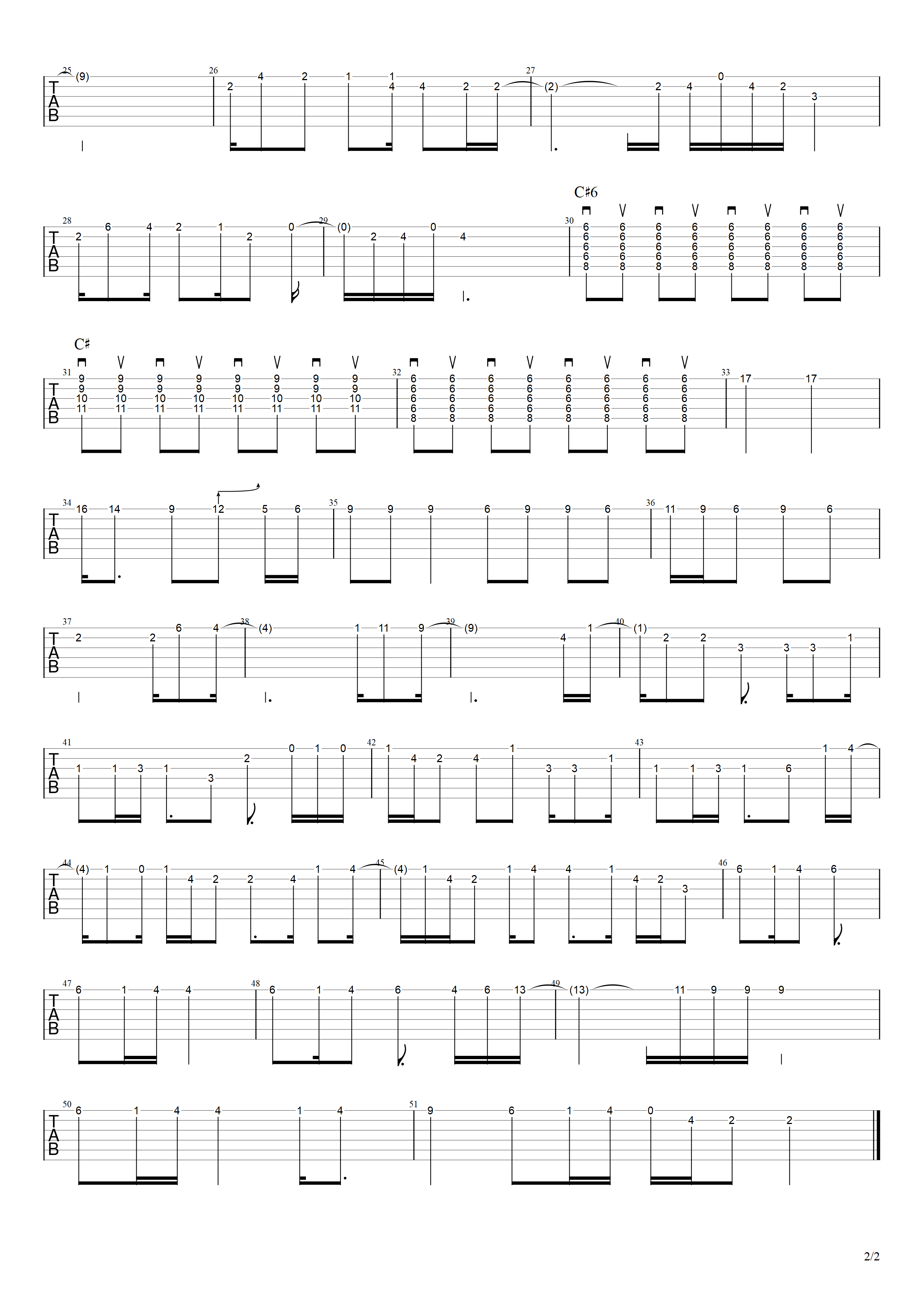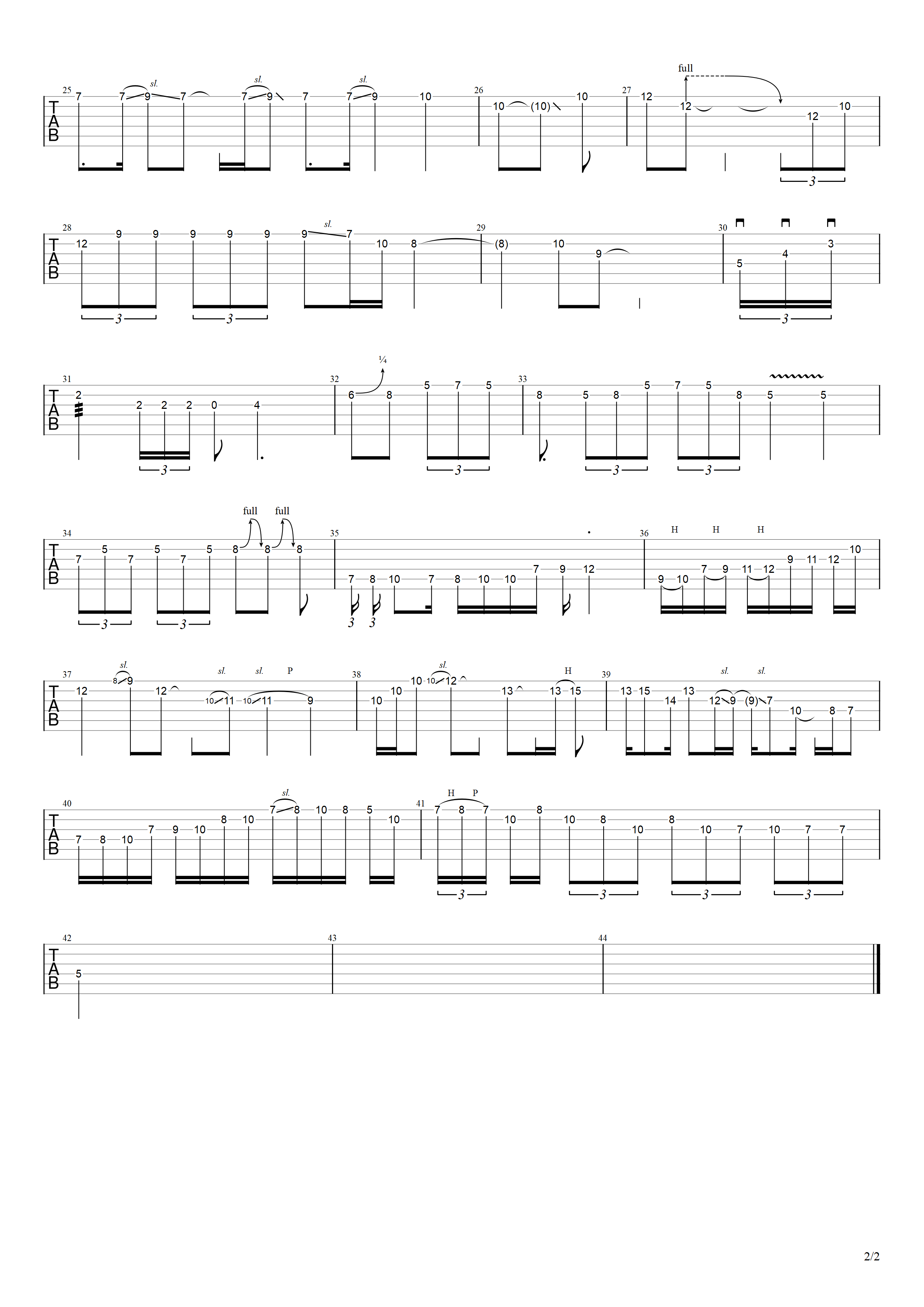 De solo's zijn zodanig gearrangeerd, dat de tabulatuur maximaal 2 pagina's beslaat, en door je beeldscherm volledig te benutten, kun je beide pagina's