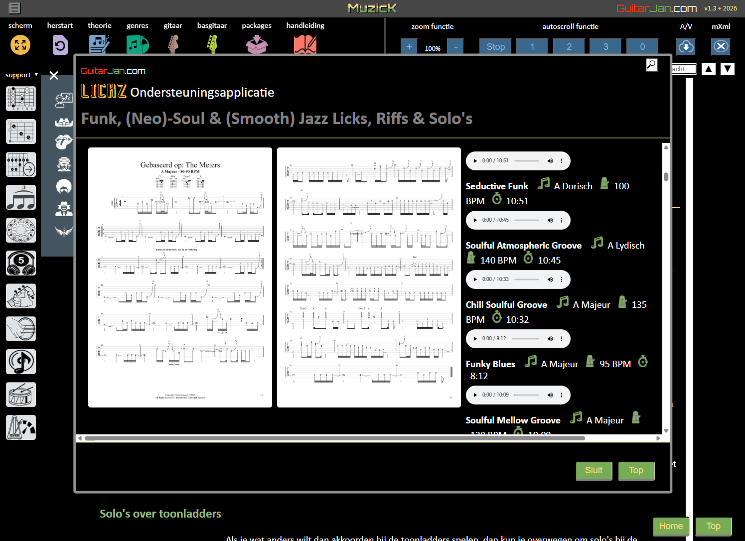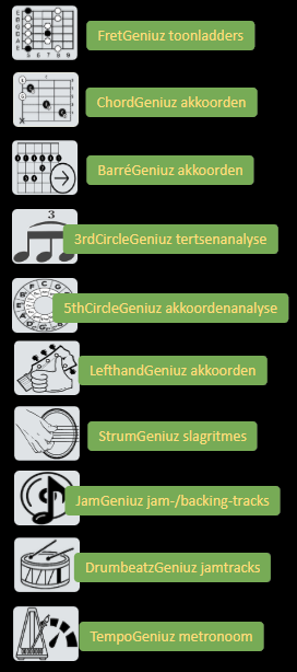 aan de gitarist tijdens studie, oefeningen of samen spelen met mede-musici. Deze support modules zijn in de zogeheten "GENIUZ" cyclus opgenomen, hebben