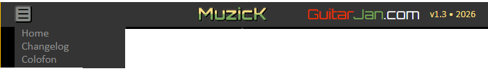 1 | De titelbalk met daarin de applicatie-aanduiding, het huidige versienummer, en aan de linkerkant een bescheiden grijze button, waarin een aantal opties kunnen worden geselecteerd door erop te klikken. Van belang zijn daarbij het Changelog en het Colofon. | |
