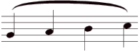 In de notenbalken hierboven is bijvoorbeeld een uitgangsnoot de c in het klein octaaf, en de doelnoot de c1 in het