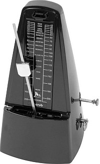 gebruiken we een metronoom, een hulpmiddel (mechanisch of electrisch) waarmee het aantal tellen in een maat wordt weergegeven. Aan de rechterkant