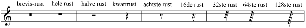 Men spreekt achtereenvolgens van brevis-rust, hele rust, halve rust, kwartrust, achtste rust, zestiende rust, twee-en-dertigste
