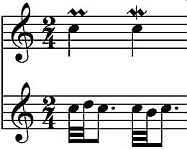 Veel ornamenten worden uitgevoerd als "snelle noten" rond een centrale hoofdnoot. Een (niet uitputtend) overzicht van