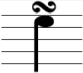 Een andere sleutel die je wellicht nog eens een keer kunt tegenkomen, is de F-sleutel. De F-sleutel wijst de plaats van de F aan.