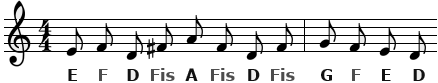Kijk eens naar het voorbeeld hiernaast en kijk eens naar de F noten.