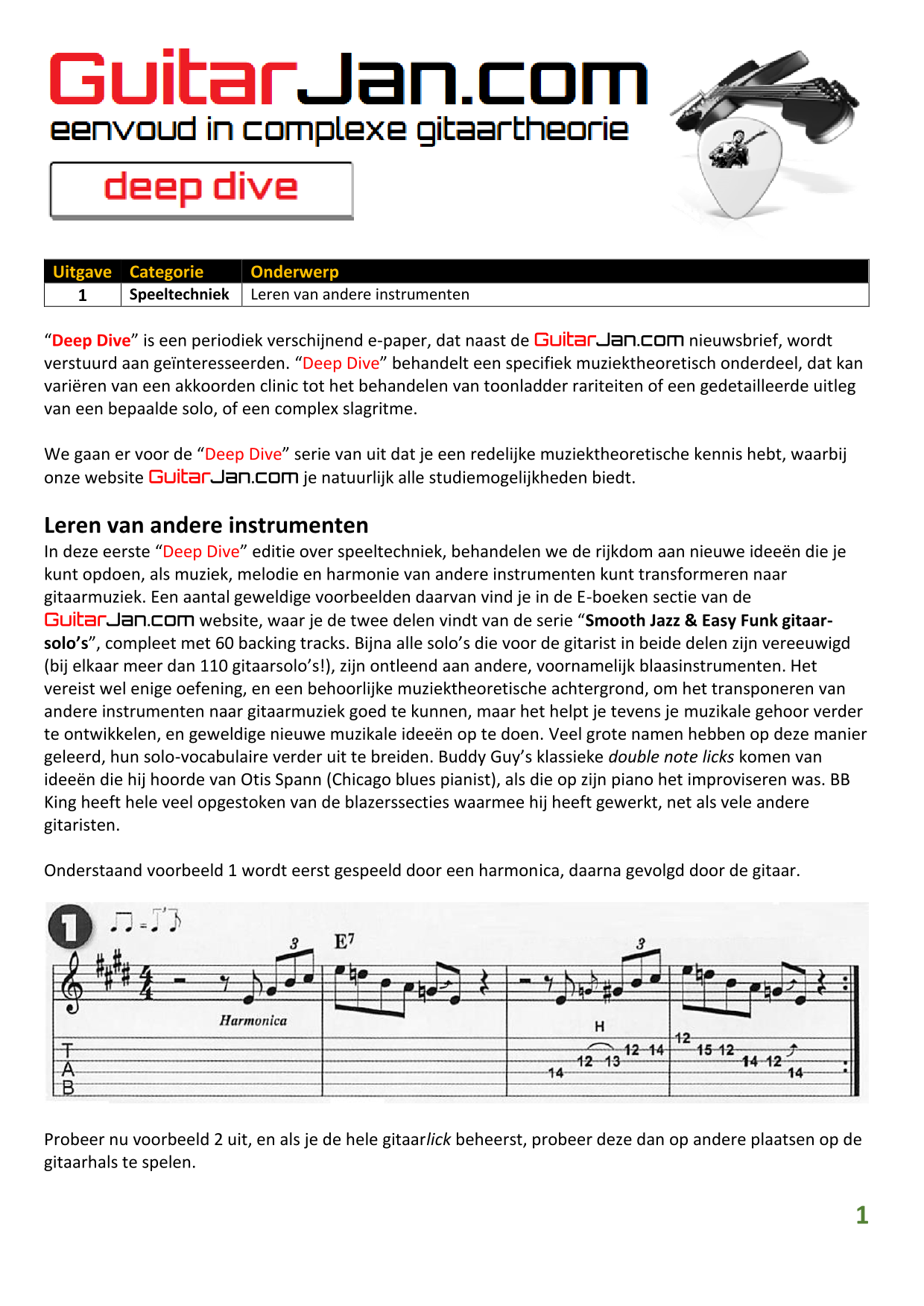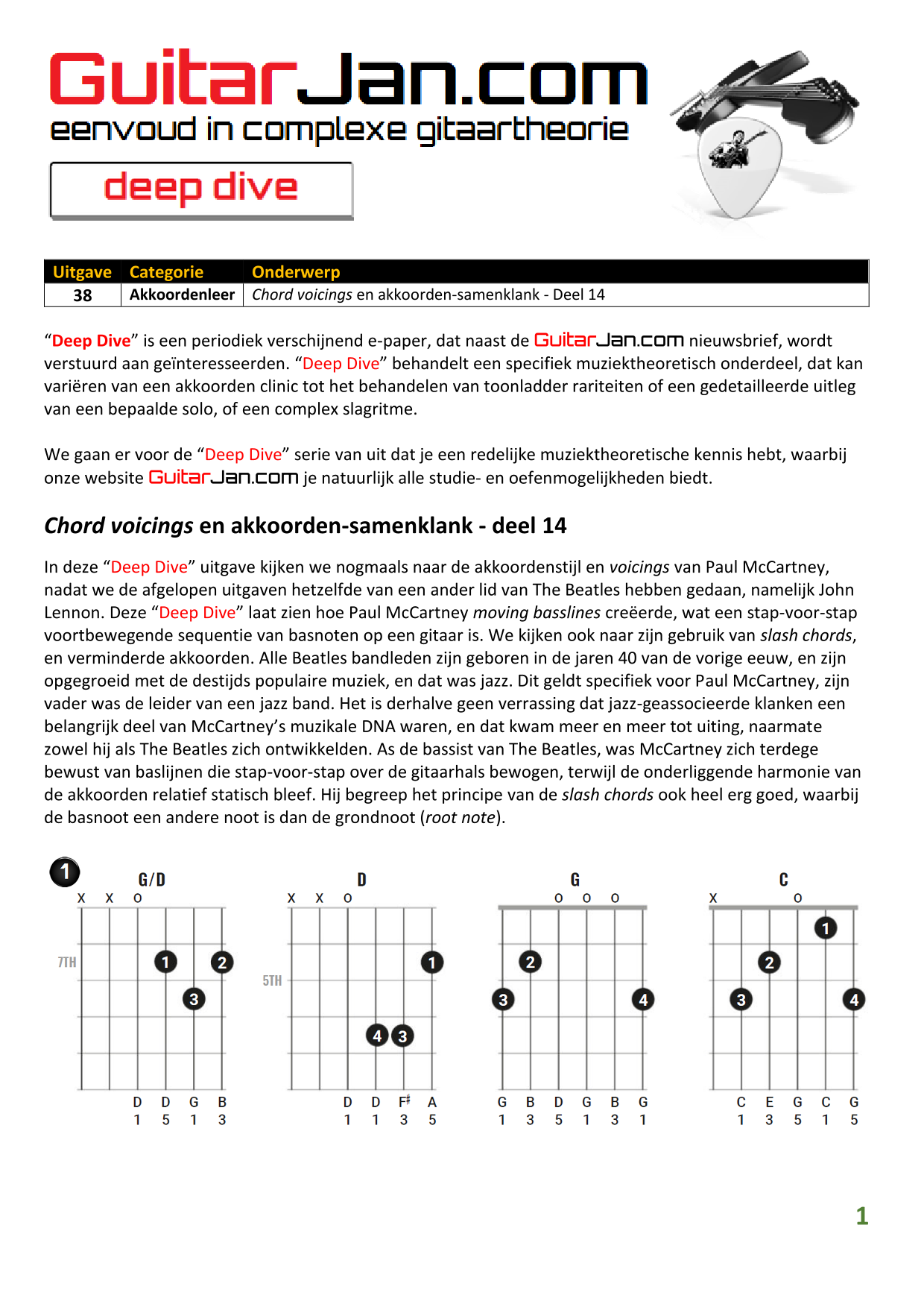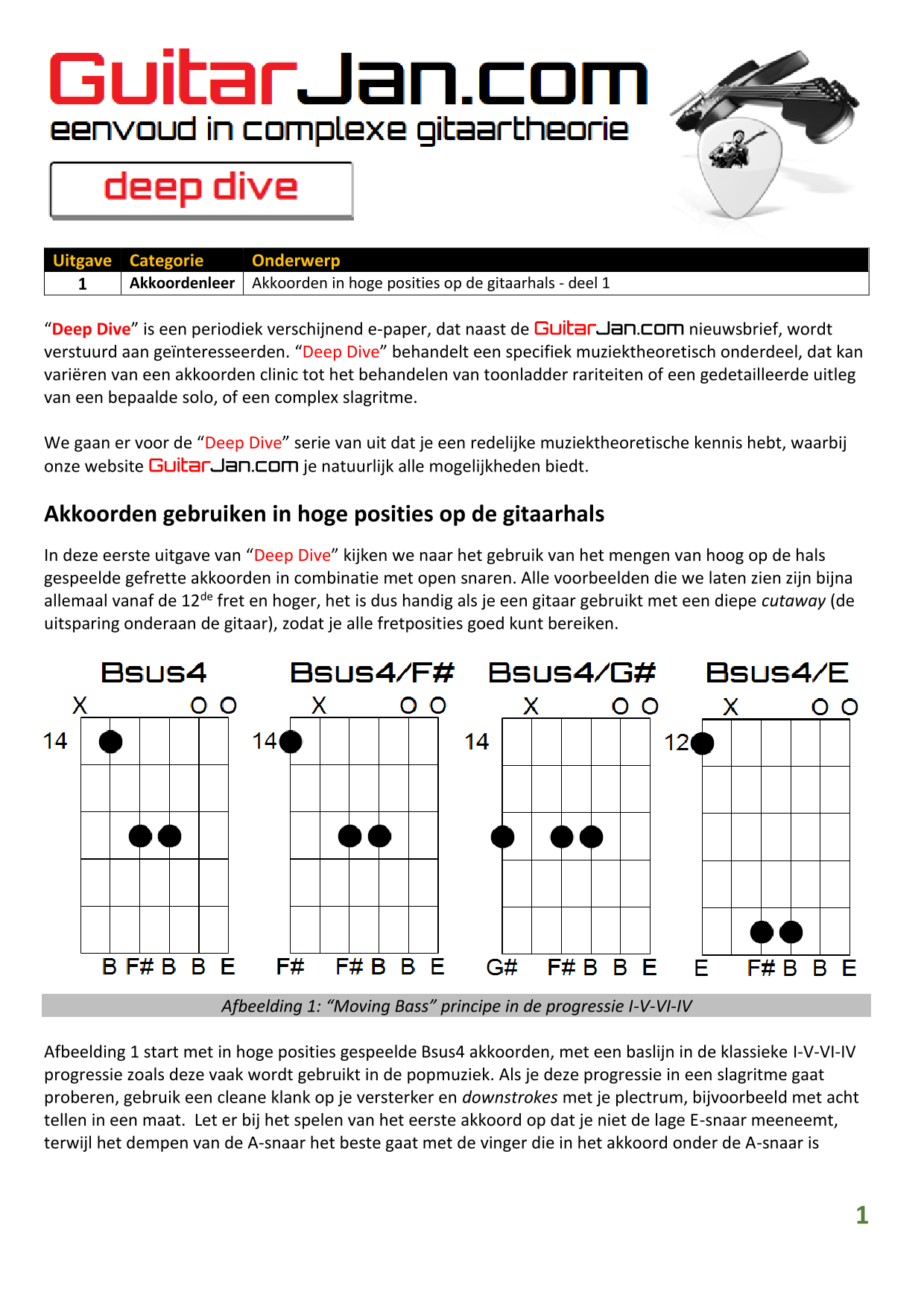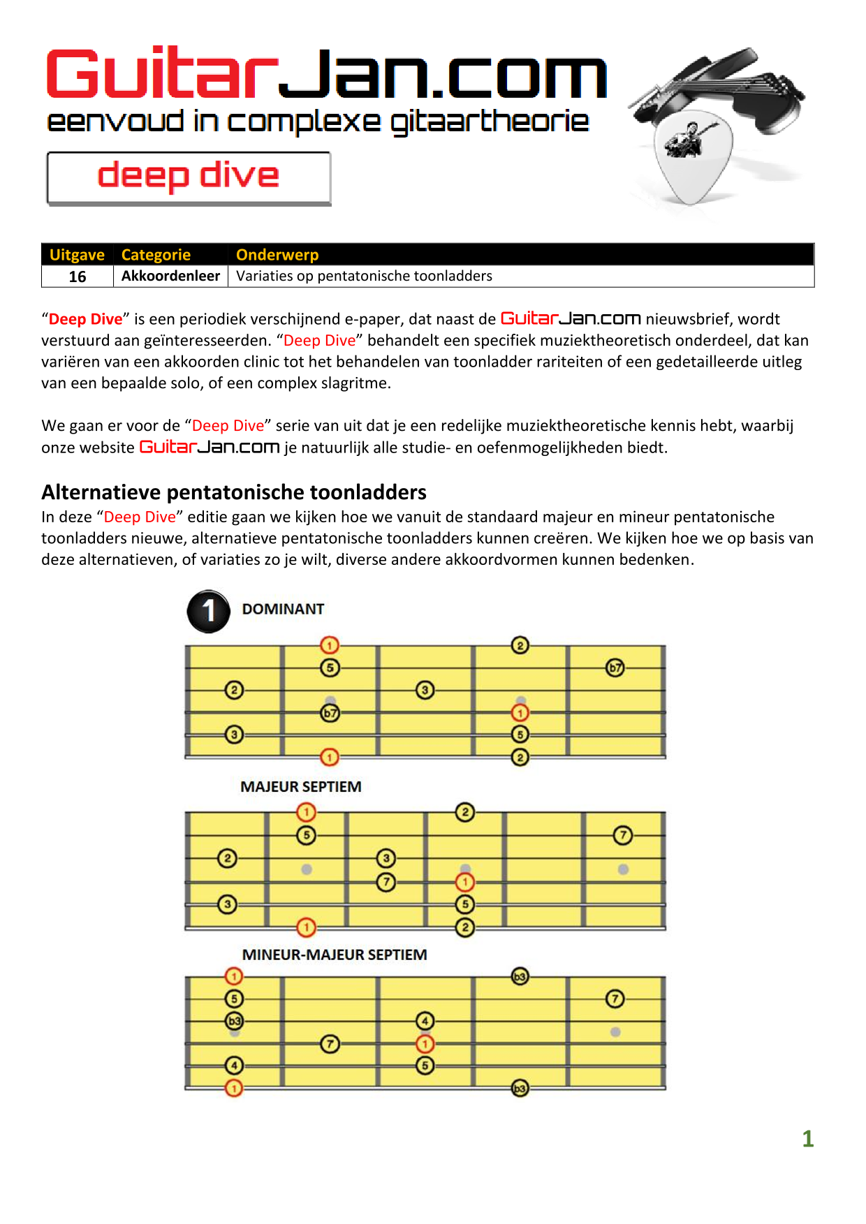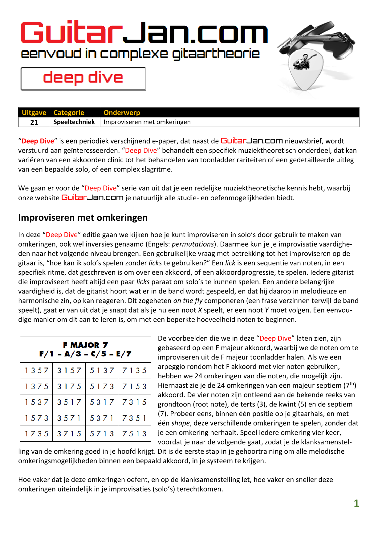 01 Akkoorden in hoge posities - Deel 1 02 Vermeerderde (augmented) akkoorden 03 Verminderde (diminished) septiemakkoorden 04 Twee-vinger akkoorden 05 Akkoorden in hoge posities - Deel 2 06 None (9) en undecime (11) akkoorden 07 Uitgestelde (suspended) akkoorden 08 7#5 (aug) akkoorden 09 Tredecime (13) akkoorden 10 Funky stemvoering 11 alternatieve Blues stemvoering 12 Verschuifbare akkoordvormen (Shapes) 13 Modale toonladderstructuren 14 Uitbreiden van akkoordprogressies