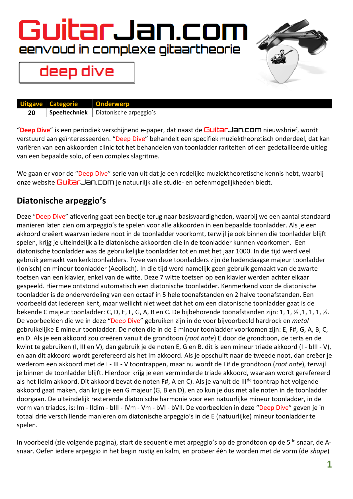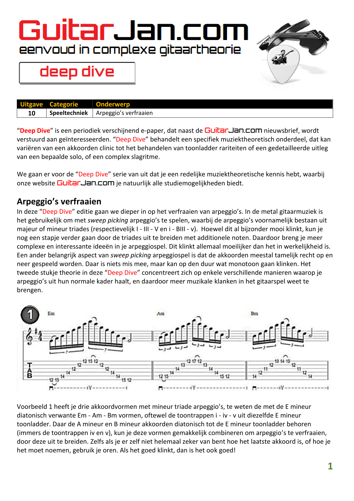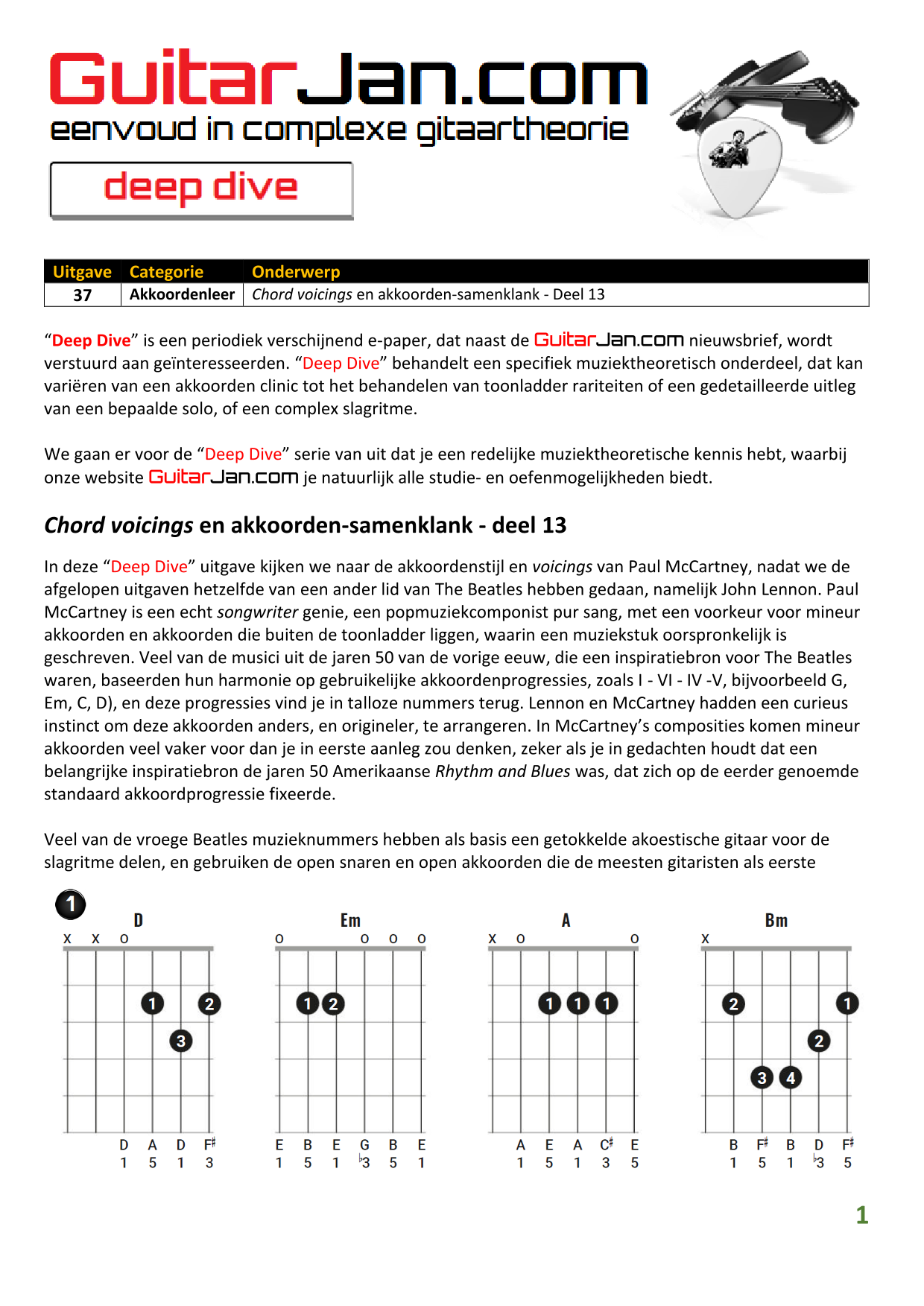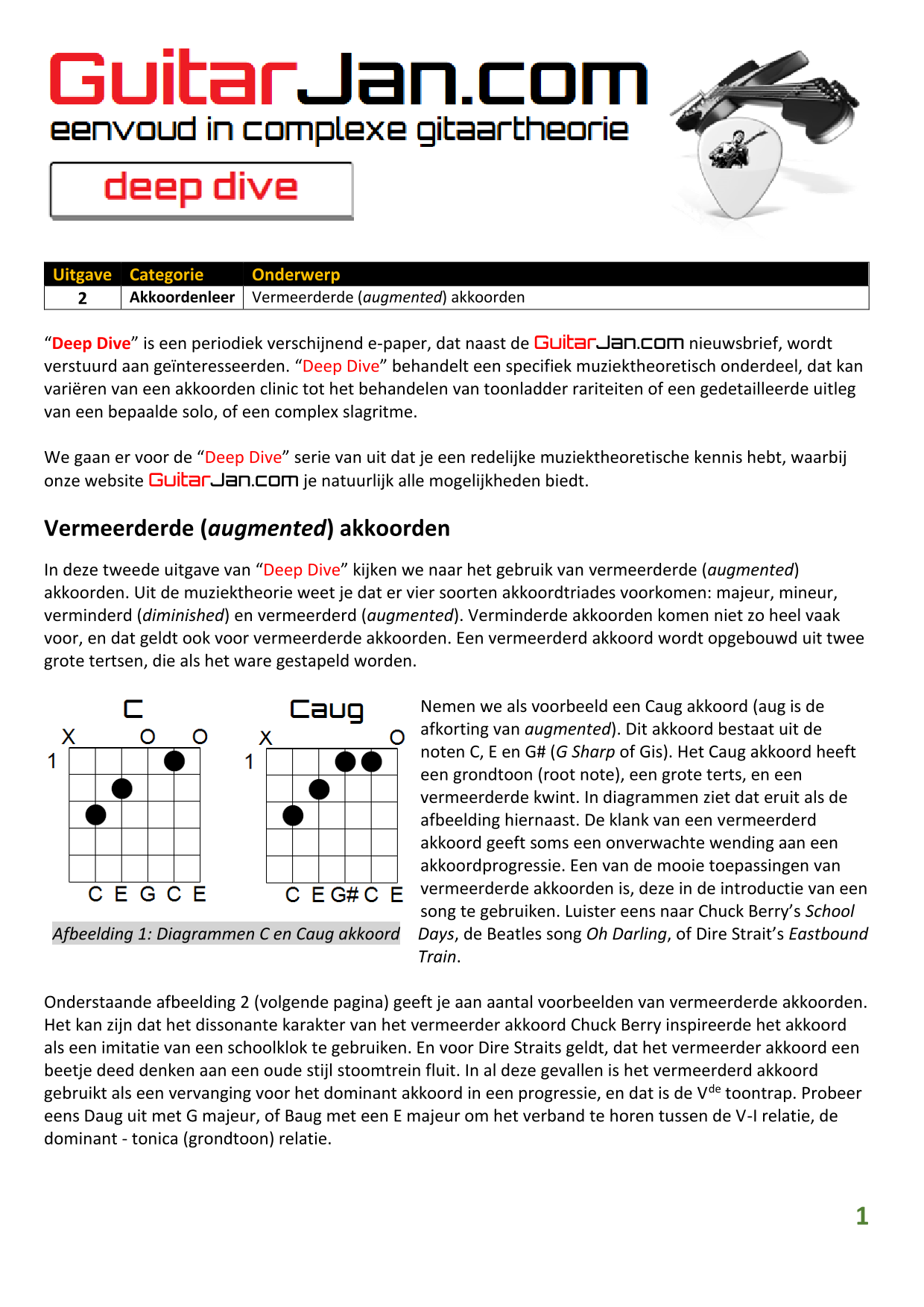 01 Akkoorden in hoge posities - Deel 1 02 Vermeerderde (augmented) akkoorden 03 Verminderde (diminished) septiemakkoorden 04 Twee-vinger akkoorden 05 Akkoorden in hoge posities - Deel 2 06 None (9) en undecime (11) akkoorden 07 Uitgestelde (suspended) akkoorden 08 7#5 (aug) akkoorden 09 Tredecime (13) akkoorden 10 Funky stemvoering 11 alternatieve Blues stemvoering 12 Verschuifbare akkoordvormen (Shapes) 13 Modale toonladderstructuren 14 Uitbreiden van akkoordprogressies