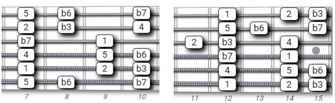 een noot verschil hebben, en hetzelfde geldt weer voor voor het 7 en het Mineur 7 akkoord.