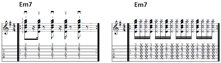 Hiernaast zie je hoe het ene akkoord in het andere akkoord overgaat, door het aanpassen van slechts één noot. Dit kan je helpen bij