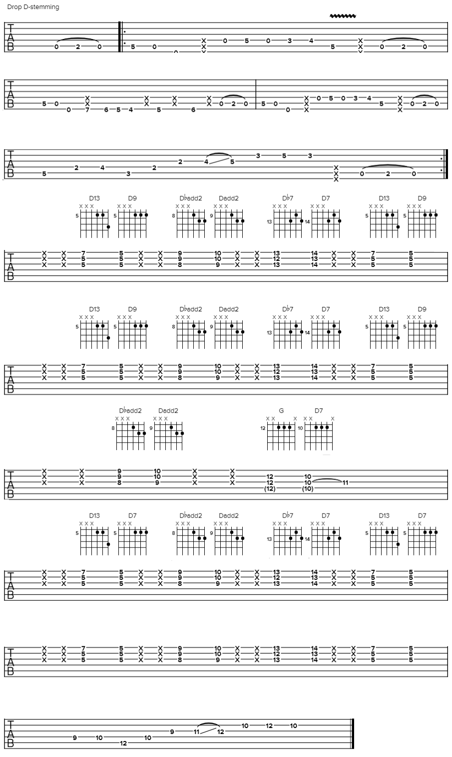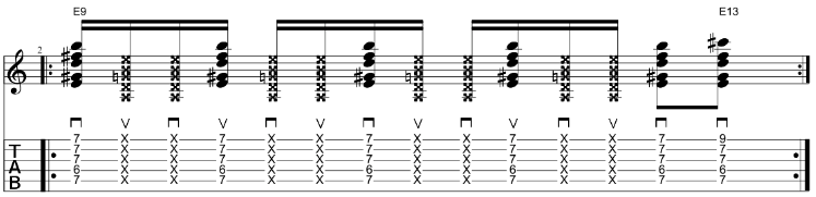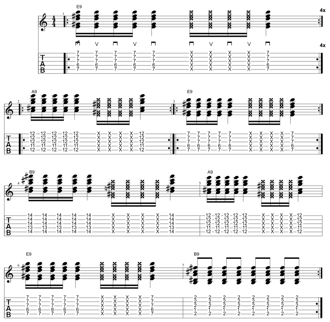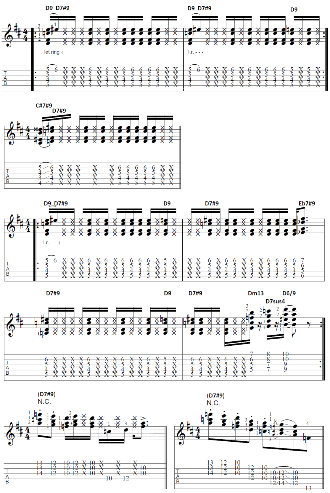 zoeken op internet, of het kopen van (song)books, gemakkelijk achterhalen. Een prachtige serie boeken met alles erop en eraan voor funk, jazz, soul etc.,