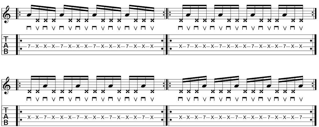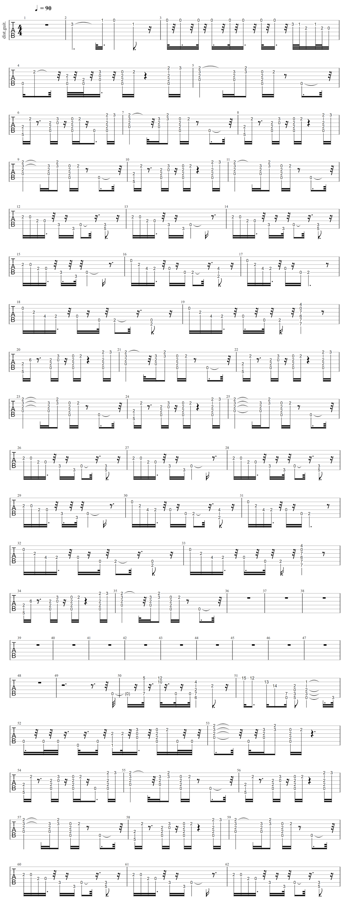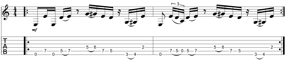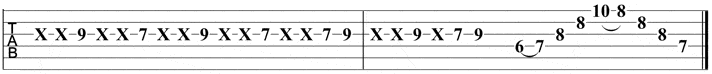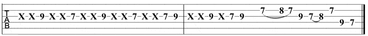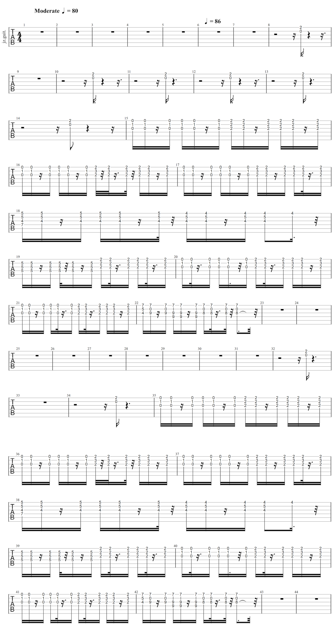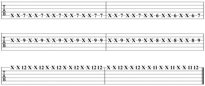 verdeeld is in ritmes van 16de noten. Dat wordt versterkt door accenten en "riffs" (ritmisch loopje) die de andere instrumenten als elektrische