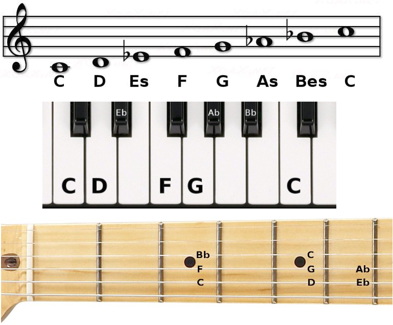 in ieder geval nogmaals de theorie over de pentatonische toonladders, omdat dit wezenlijk is te begrijpen hoe Blues