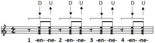 En het mooiste is, als je er een combinatie van maakt, dus één offbeat in de maat met een down- en upstroke,