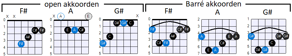 wat anders, omdat we daarvoor zogeheten "verkorte" Barré akkoorden voor kunnen gebruiken. We weten