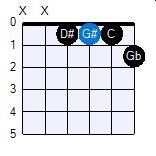 Hetzelfde kun je doen met de septiem (7) akkoorden over de hele hals. Je neemt als uitgangspunt Het G♯7 akkoord,