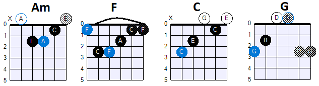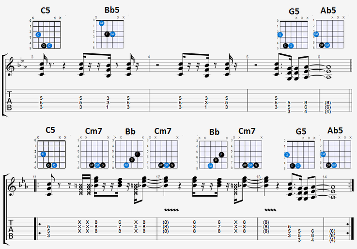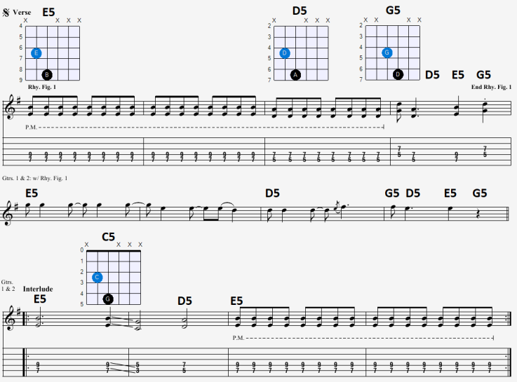 De Power Chords die in grote delen van de song door gebruikt worden. Voor de modulatie in de song gelden weer andere