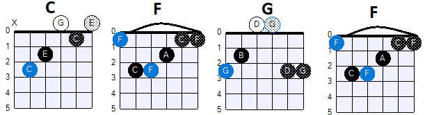 Deze akkoordprogressie is vanuit de traditionele countrymuziek in de rockmuziek belandt, maar is eigelijk