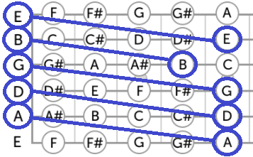 | Em | 1 x ♯ | E | F♯ | G | A | B | C | D | E |