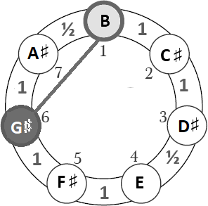 | G | 1 x ♯ | G | A | B | C | D | E | F♯ | G |