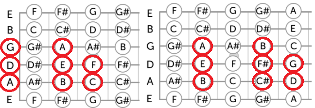 Als je duidelijk is, hoe de logica van je gitaarhals qua noten in elkaar steekt (zie anders nog even bovenstaande afbeeldingen),