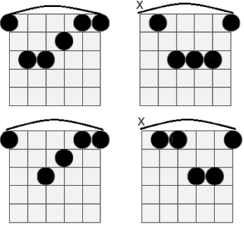 snaar, de noten B, E en F♯ weglaten, dan klinken de akkoorden echter iets minder "vol", zeker als je het akkoord over alle snaren