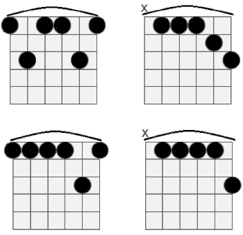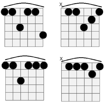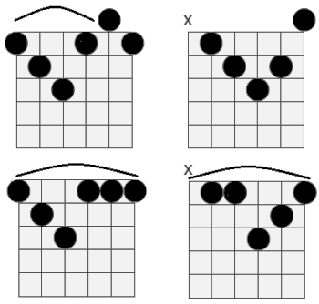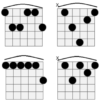 gebruiken verkorte barré akkoorden, waarbij ze in plaats van drie vingers om het akkoord te plaatsen, een akkoord nemen dat maar twee