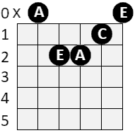 afhankelijk van waar je de Shape laat beginnen op de gitaarhals, als een A klinkt.