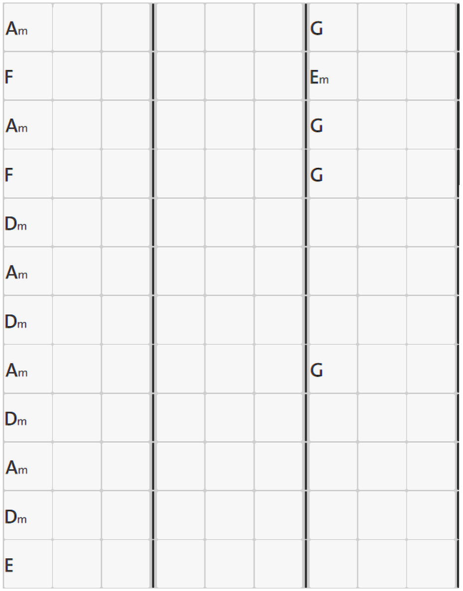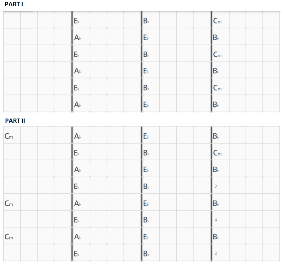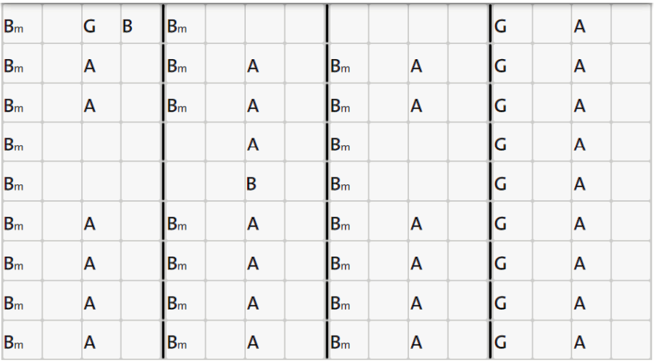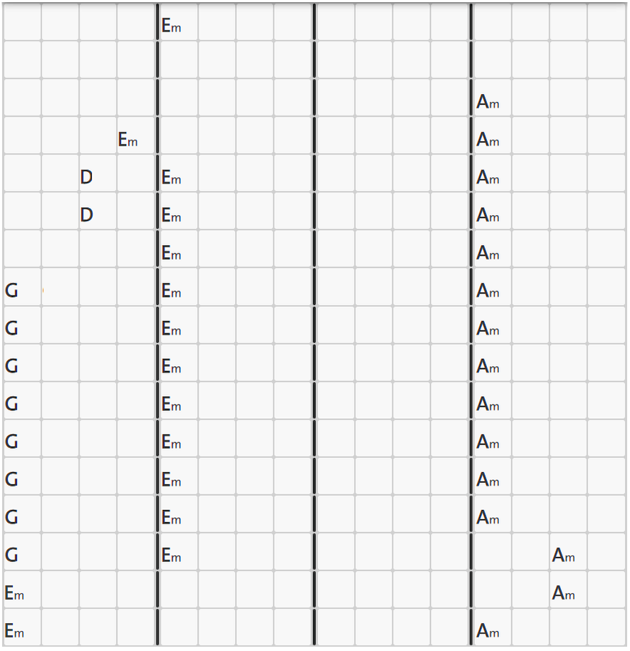 Om je goed op weg te helpen bij het meespelen met de backing tracks hebben we, in "Chordify"-vorm, een "meespeel"-schema