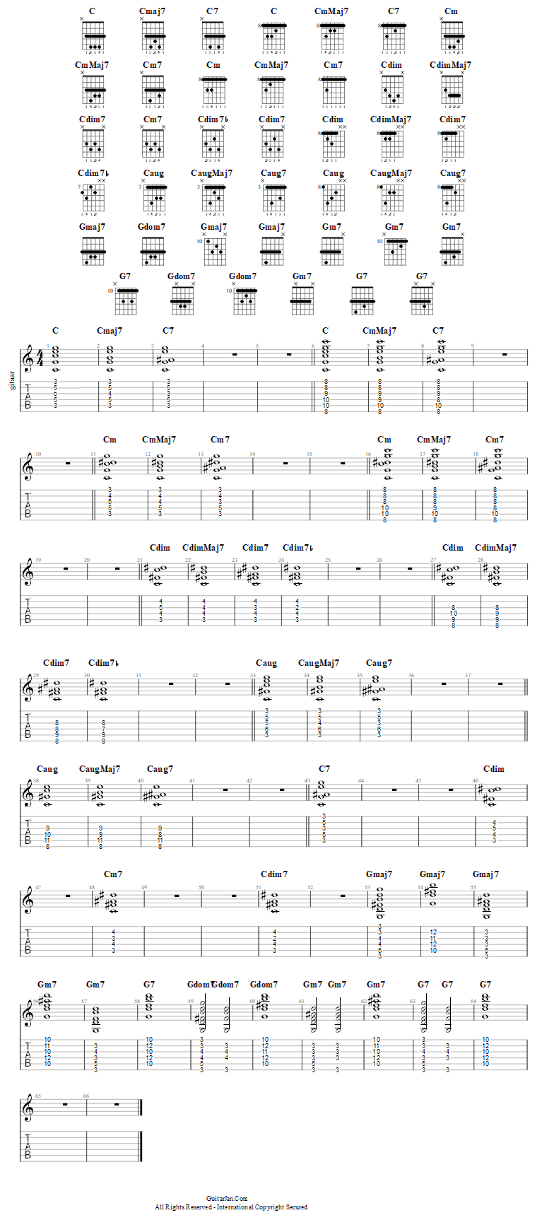 We beginnen met een aantal tabulaturen die je kunt gebruiken om een beter inzicht te krijgen in de verschillende barré