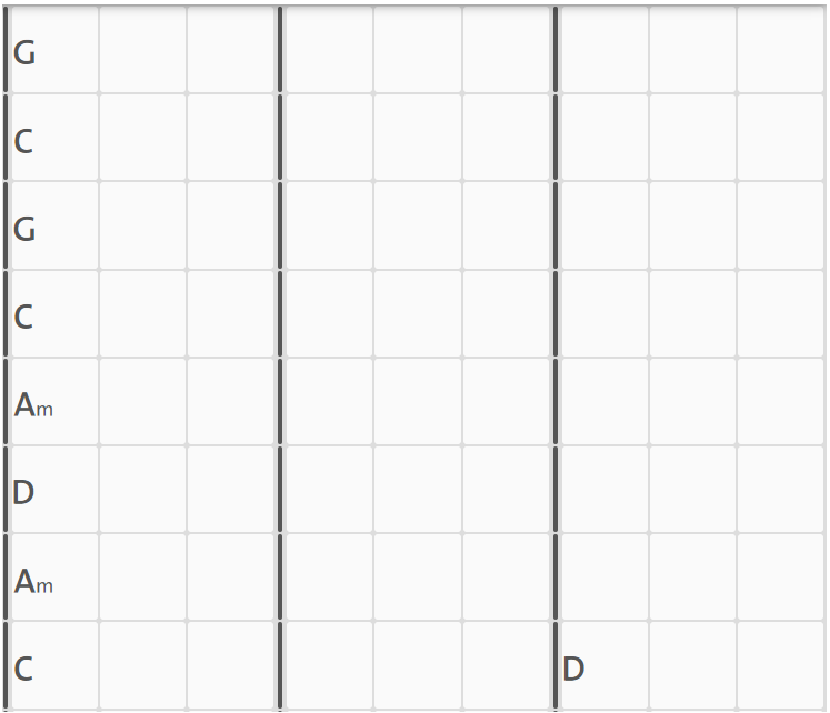 ineens de I - IV - V akkoordprogressie in een andere toonladder kunt maken. Laten we het eens proberen met een I - IV - V progressie in G majeur.