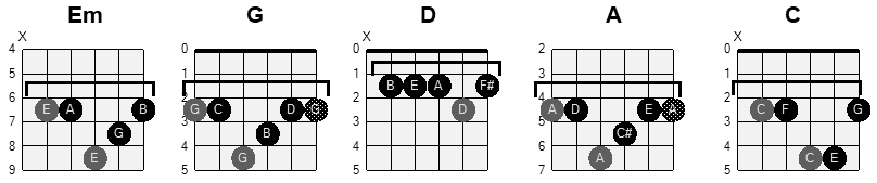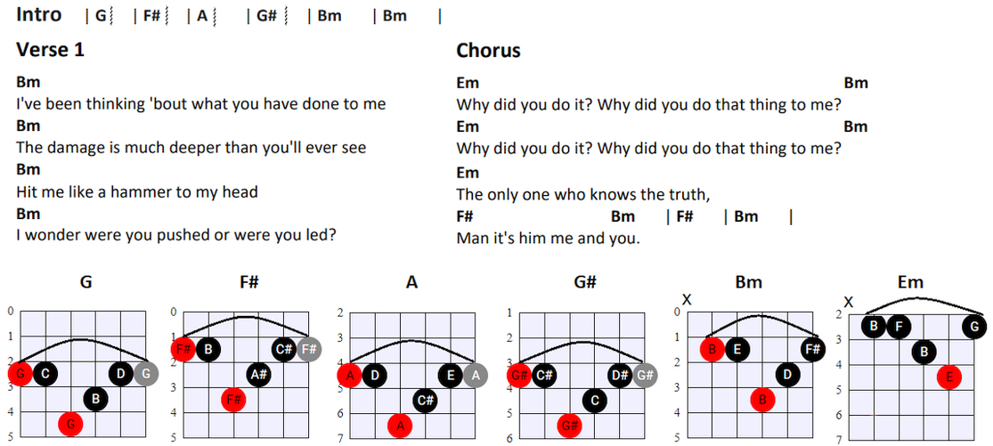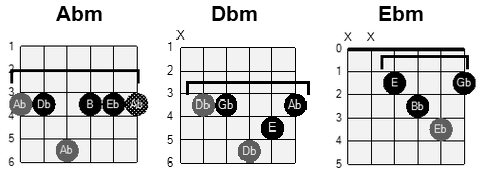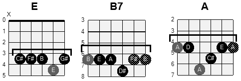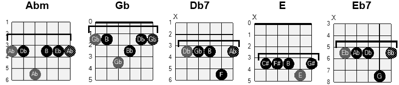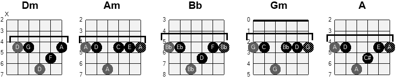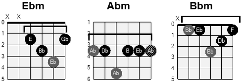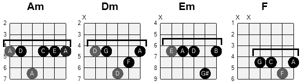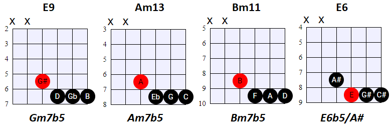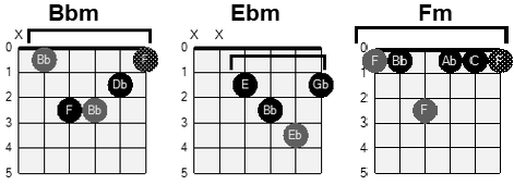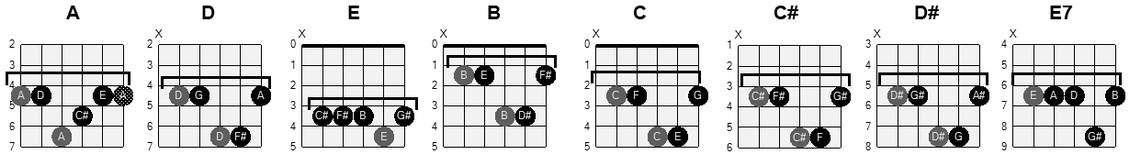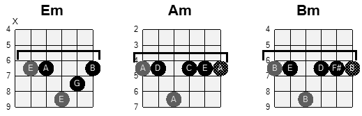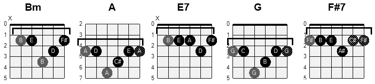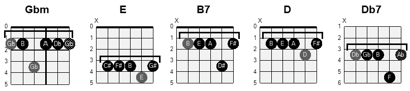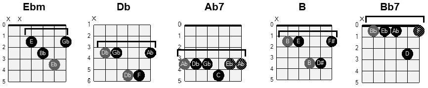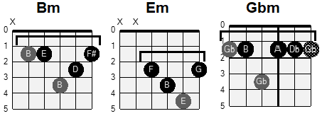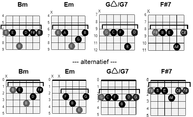 in één barré Shape te spelen zijn, simpel speelbaar. Daarna speel je vooral in B mineur, met een klein uitstapje naar F♯ en E mineur.