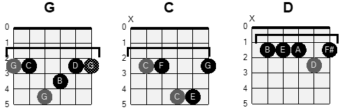 Om niet in deze valkuil te trappen, speelt de gitarist over het algemeen alleen de noten op de G, B en hoge-E snaar, eventueel nog de D