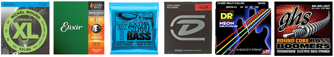 volgende bassnaar merken zijn het meest populair: DR Strings, D’Addario, Ernie Ball, GHS, Elixir en Dunlop.