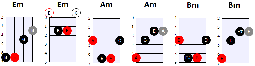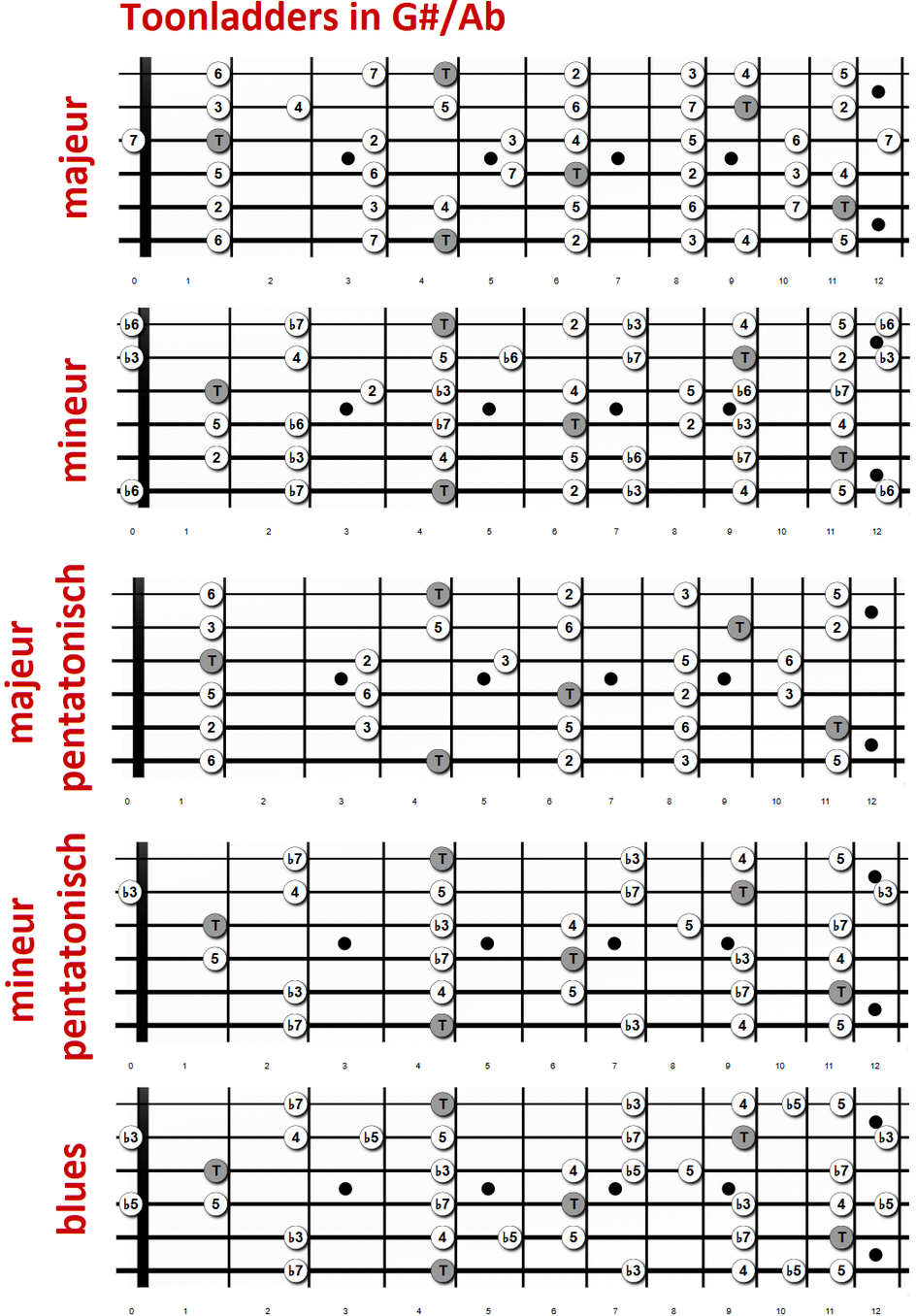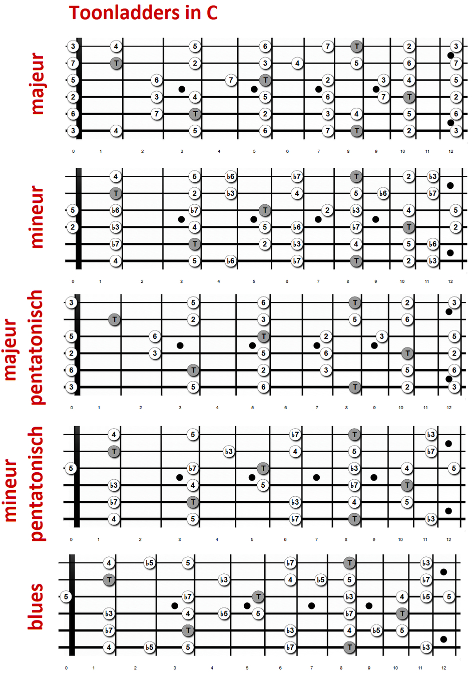 mineur pentatonisch, blues (basis mineur).