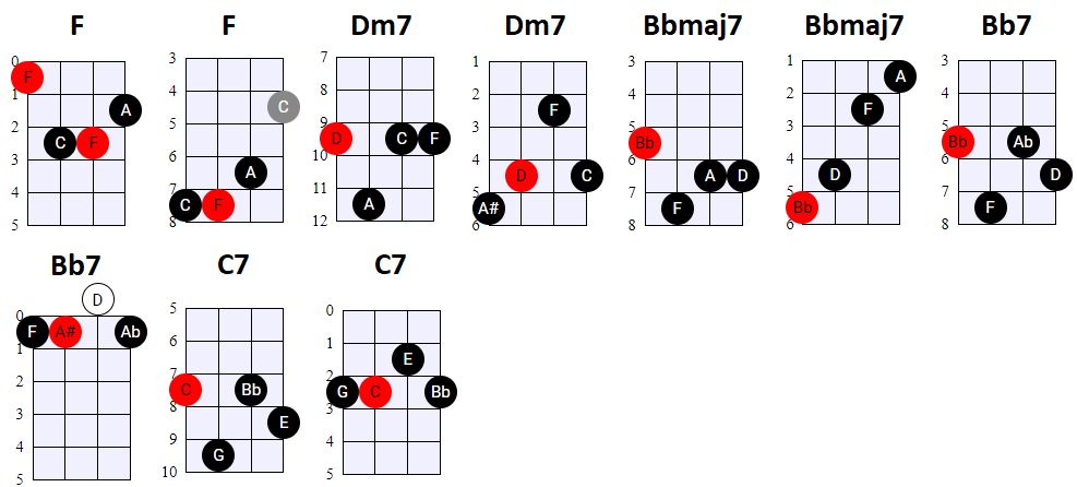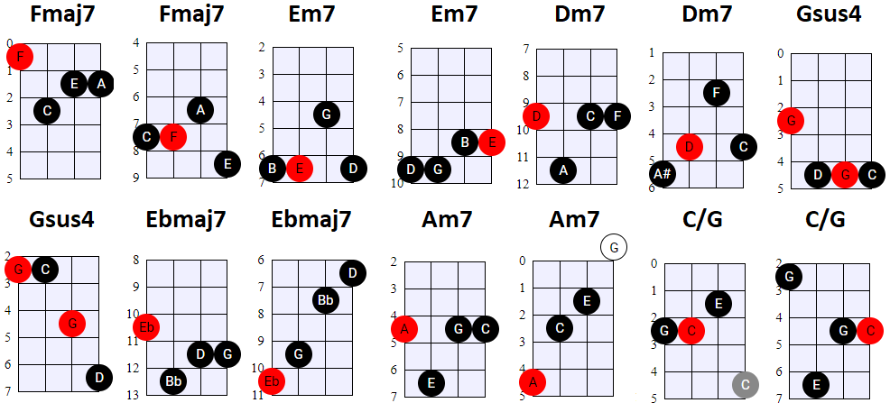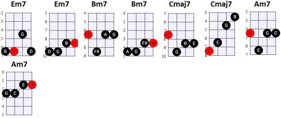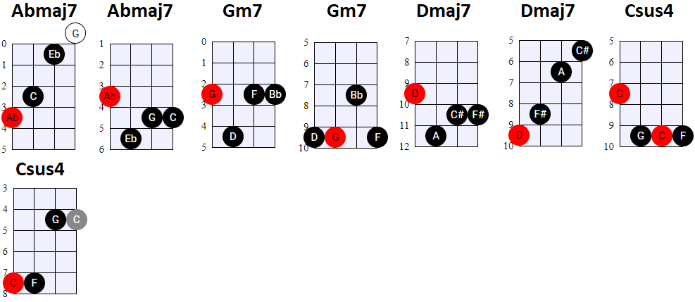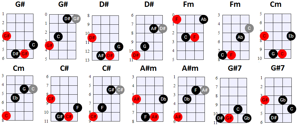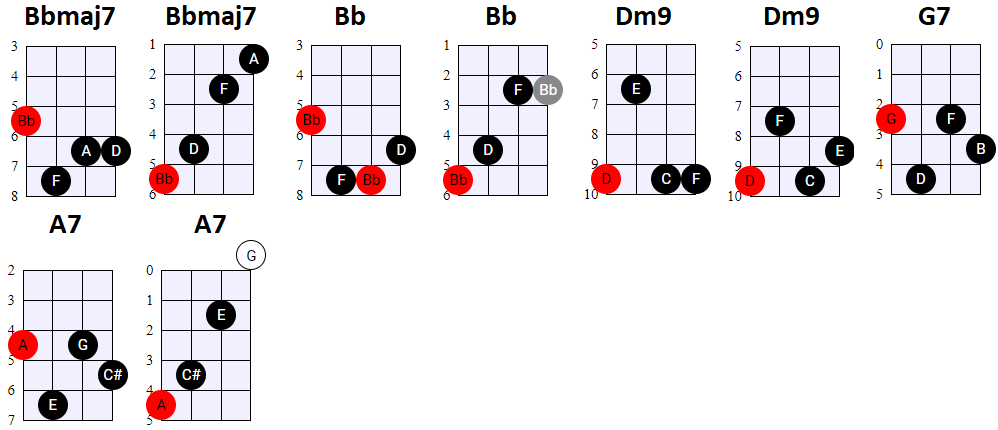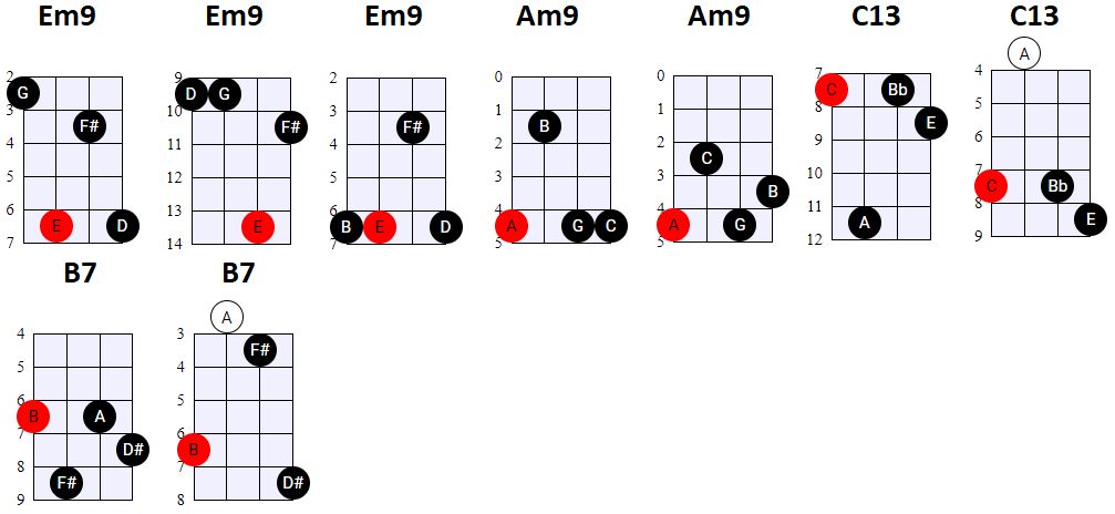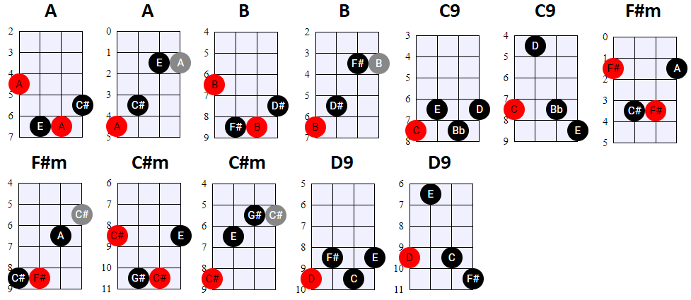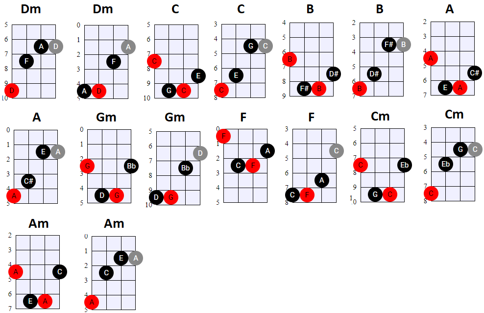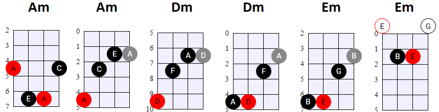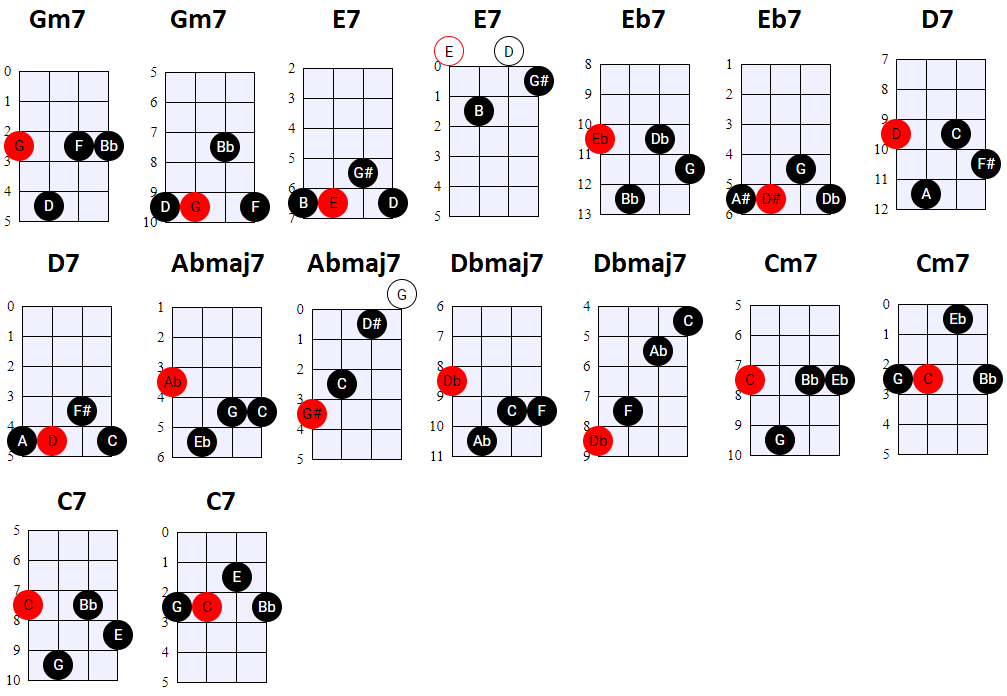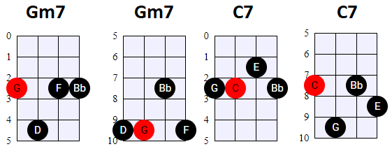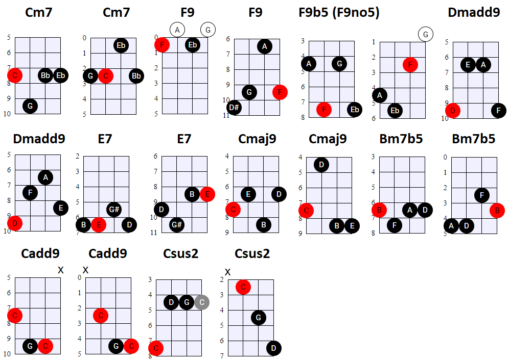 andere Shapes wilt gebruiken, of geen 4-snaren maar 3-snaren akkoorden wilt spelen, is dat natuurlijk prima. Hier en daar wisselen we ook het gebruik