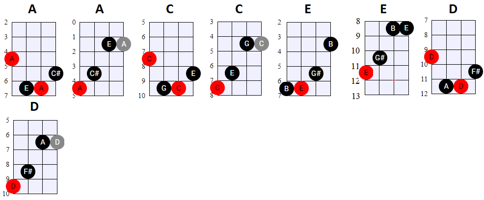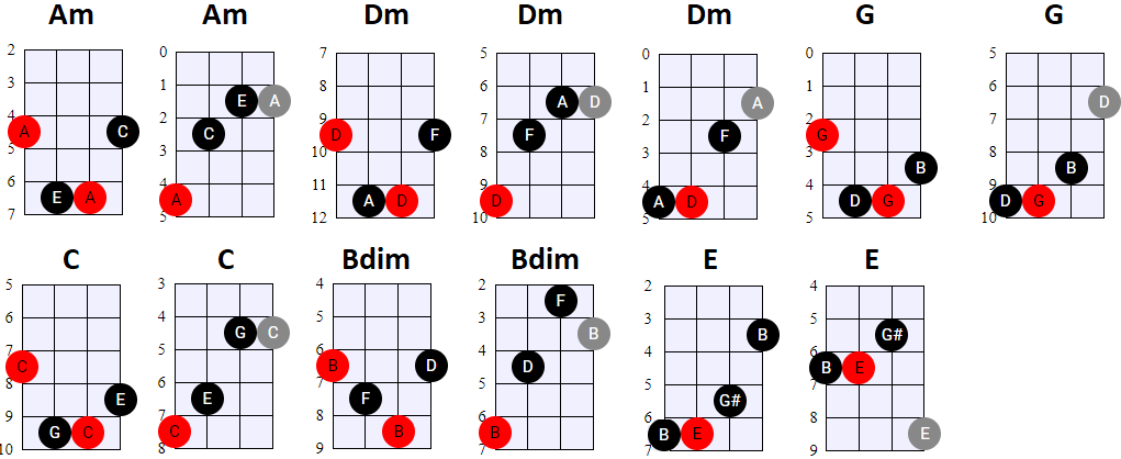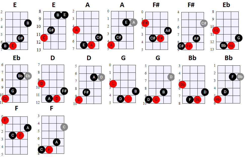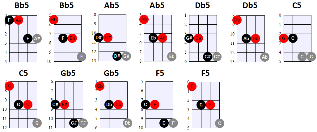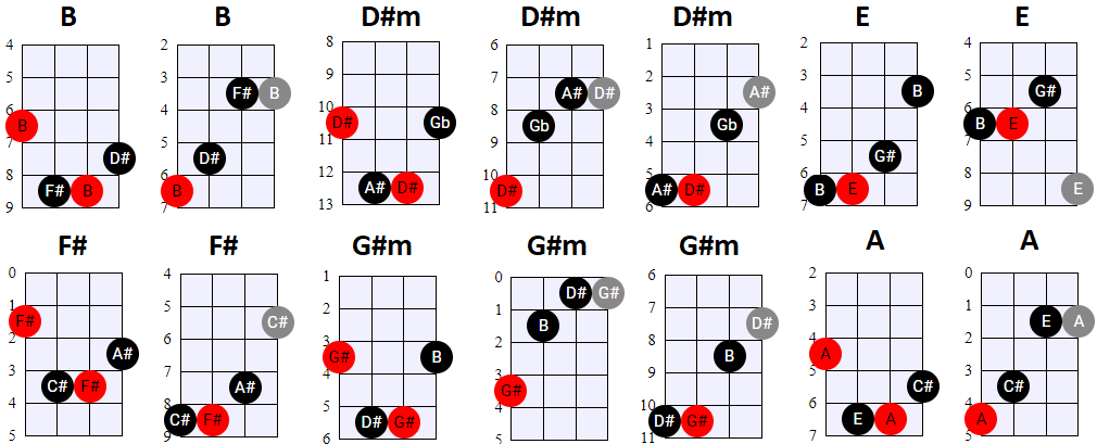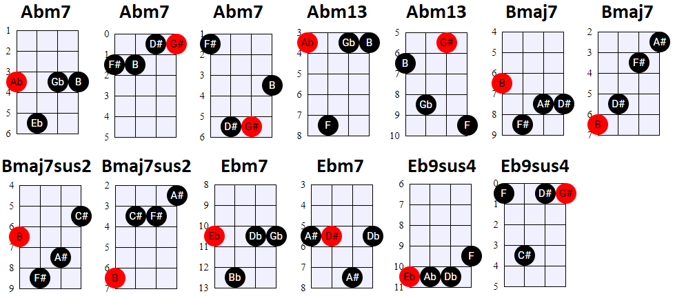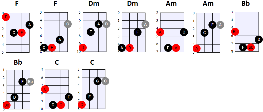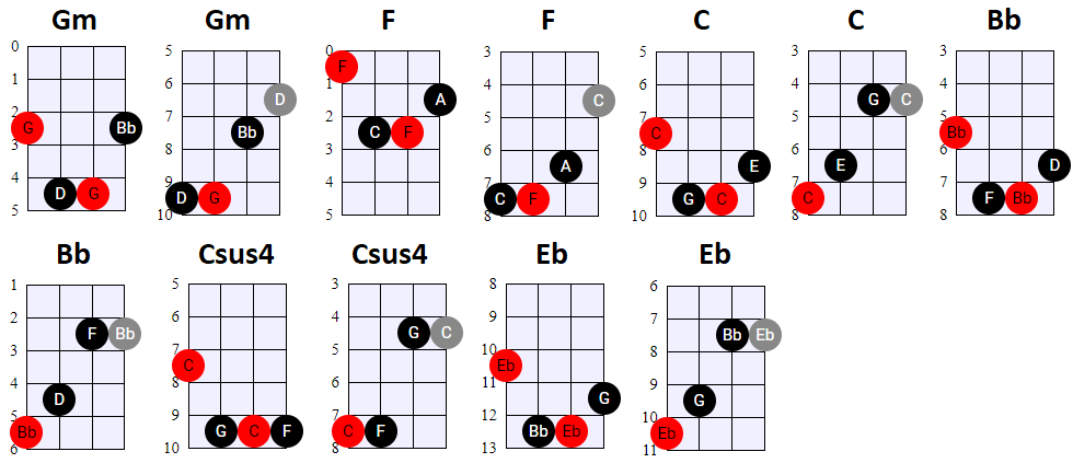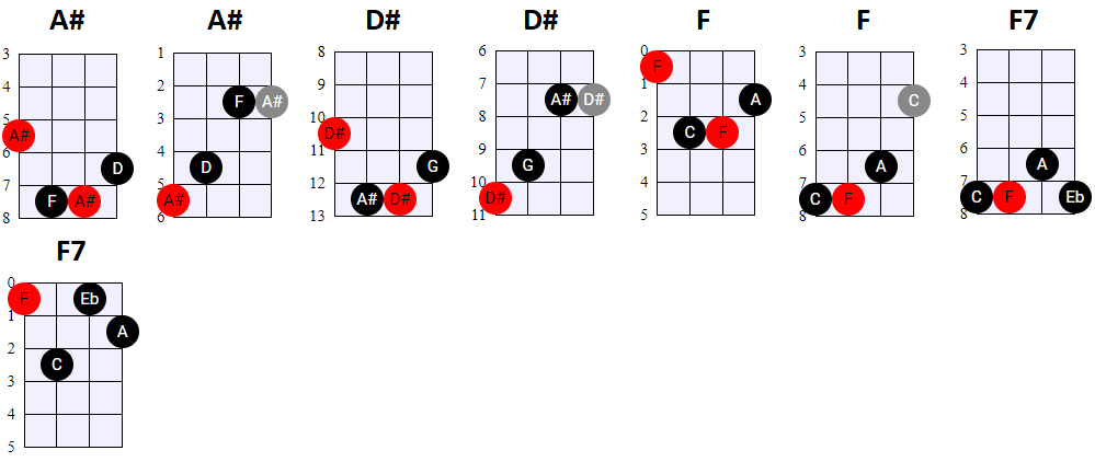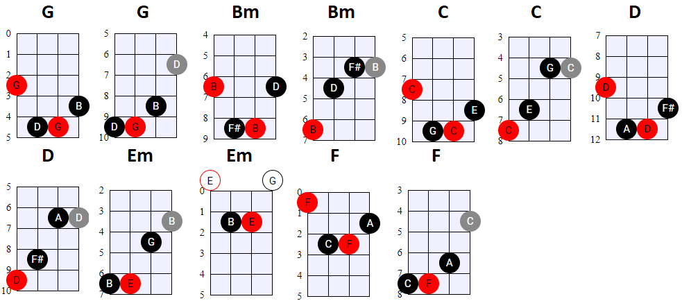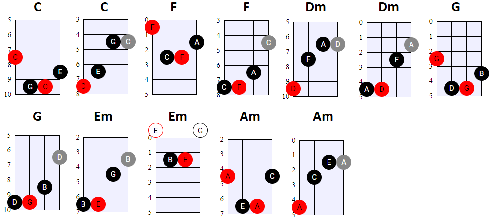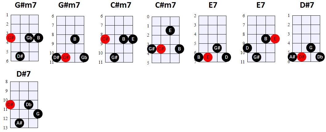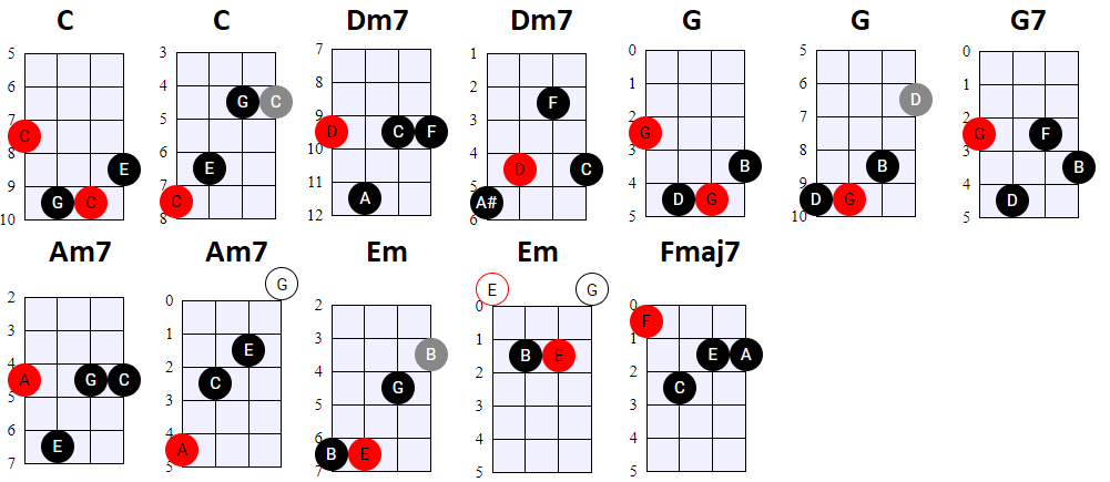 andere Shapes wilt gebruiken, of geen 4-snaren maar 3-snaren akkoorden wilt spelen, is dat natuurlijk prima. Hier en daar wisselen we ook het gebruik