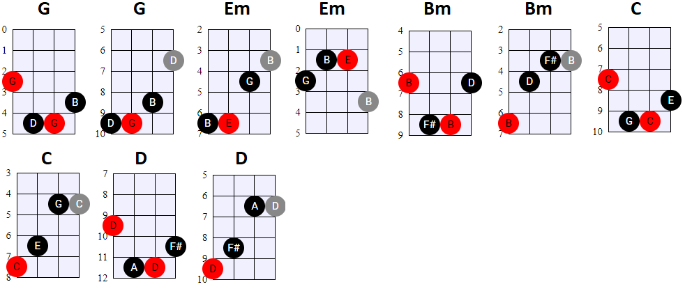 aantal akkoorden soms meerdere varianten geven. Let wel: je hoeft niet persé de akkoorden op de voorgestelde manier te spelen. Als je